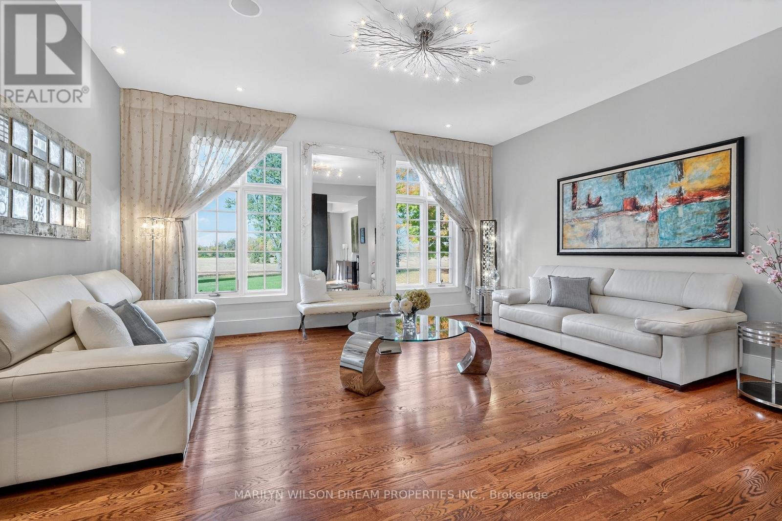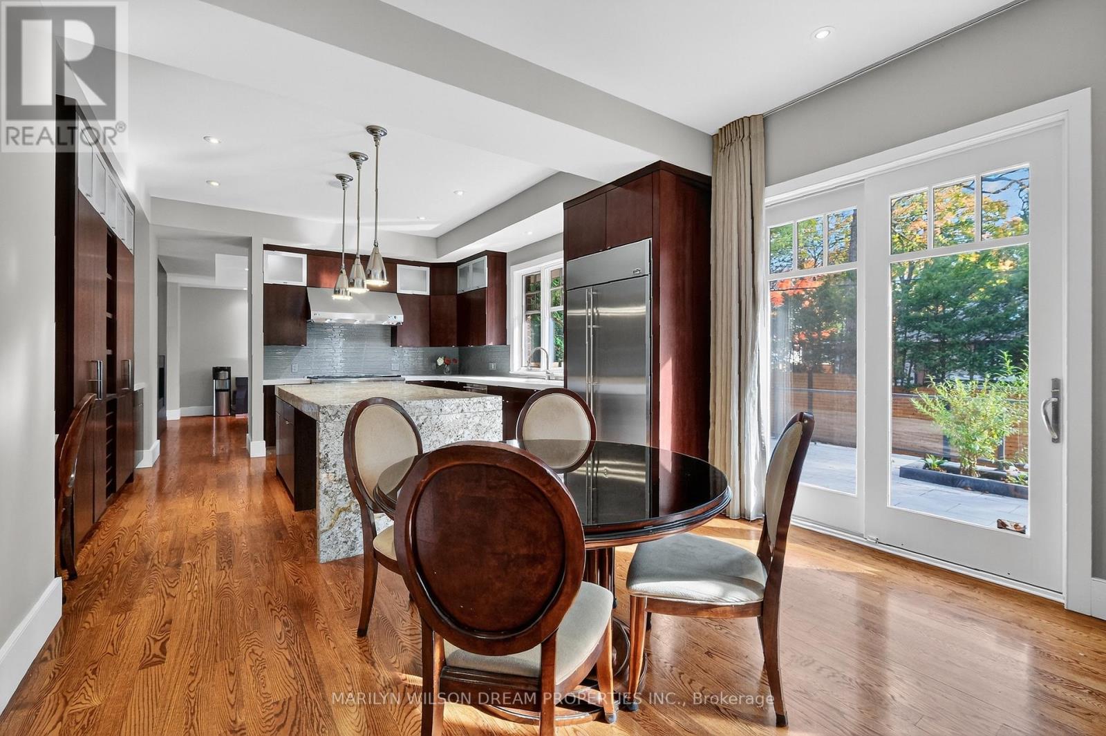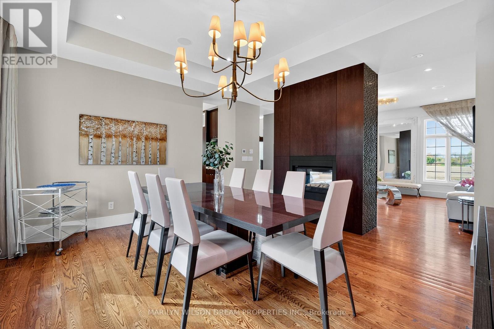 Beautifully positioned across from serene parkland, this distinguished Rockcliffe Park residence offers rare privacy and tranquil natural views. This custom home was built in 2008 by Minto and stands apart as one of the community's newer homes. It offers an elegant brick-and-stone façade complemented by expansive windows that invite in parkland views. Inside, the home features 10-foot ceilings on the main floor and 9-foot ceilings above. The grand double-height foyer, with 22-foot ceilings and striking modern lighting, sets the tone for the home's airy, light-filled interiors. The living and dining rooms are divided by a dramatic double-sided rift-cut oak fireplace accented in sandstone - an architectural focal point that balances warmth and sophistication. The chef's kitchen continues the theme of understated luxury, with custom rift-cut oak cabinetry, quartz countertops, a glass backsplash, and a statement granite island. Open to the family room and leading directly to the landscaped terrace, it's ideal for both daily living and entertaining. The main-floor study, with built-in cabinetry and views of the park, provides a peaceful retreat. Upstairs, four bedrooms each feature their own ensuite bathroom, while the primary suite offers a spa-inspired haven with a steam shower, freestanding soaking tub, and double vanity. The second-floor laundry room is outfitted with a sink and hanging space for convenience. The lower level enhances the home's livability with radiant-heated floors, a fully-equipped home theatre with surround sound, an exercise room, a four-piece bathroom, and direct access to the double garage. Designed with comfort and modern functionality in mind, this Rockcliffe Park residence seamlessly combines timeless craftsmanship with contemporary luxury in a superb setting. (41543904)