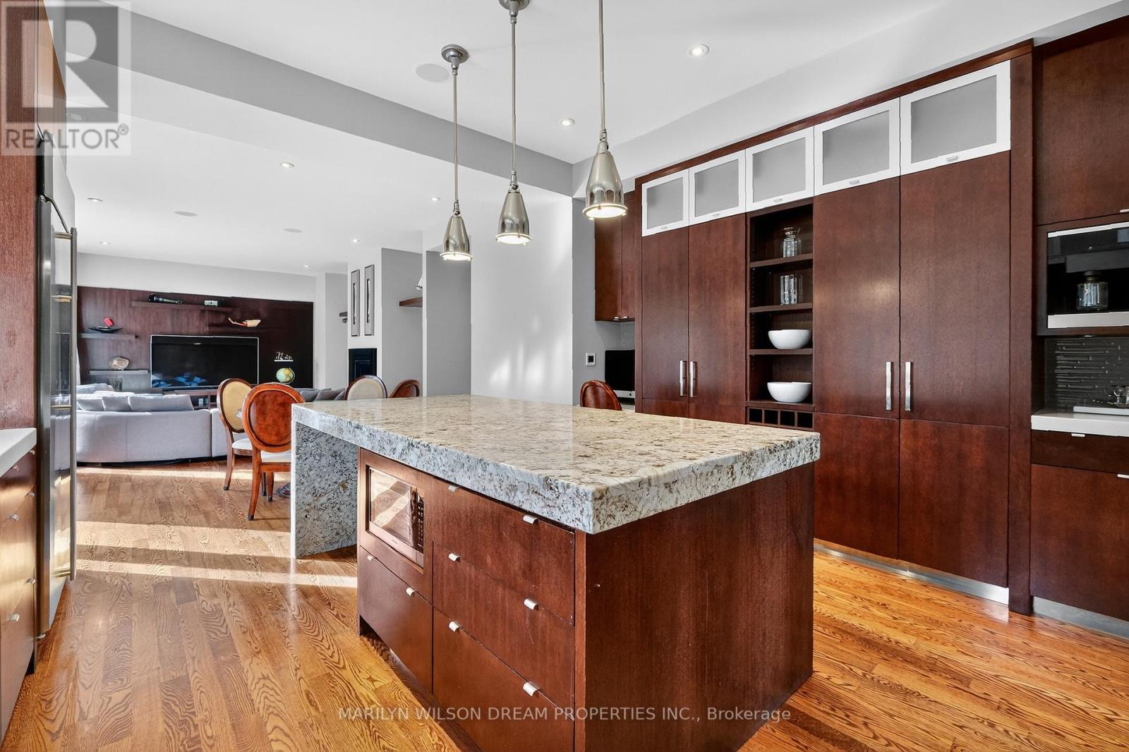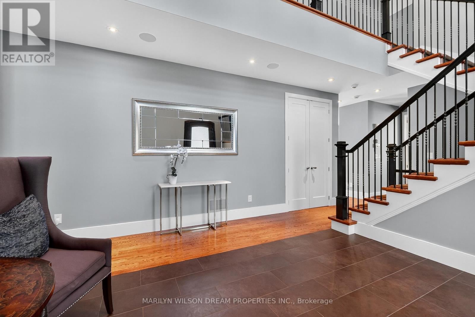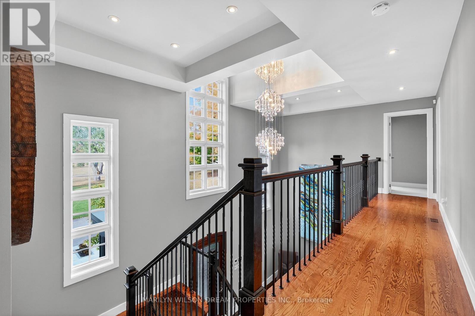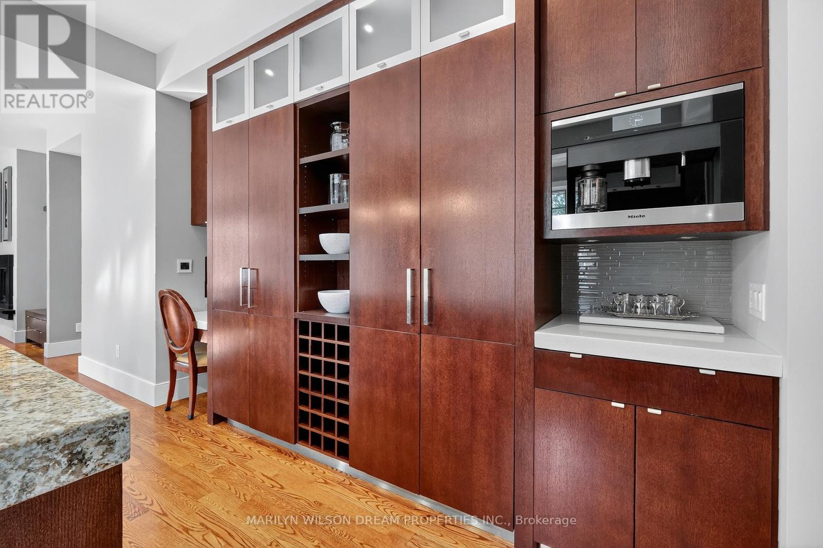 Beautifully positioned across from serene parkland, this distinguished Rockcliffe Park residence offers rare privacy and tranquil natural views. This custom home was built in 2008 by Minto and stands apart as one of the community's newer homes. It offers an elegant brick-and-stone façade complemented by expansive windows that invite in parkland views. Inside, the home features 10-foot ceilings on the main floor and 9-foot ceilings above. The grand double-height foyer, with 22-foot ceilings and striking modern lighting, sets the tone for the home's airy, light-filled interiors. The living and dining rooms are divided by a dramatic double-sided rift-cut oak fireplace accented in sandstone - an architectural focal point that balances warmth and sophistication. The chef's kitchen continues the theme of understated luxury, with custom rift-cut oak cabinetry, quartz countertops, a glass backsplash, and a statement granite island. Open to the family room and leading directly to the landscaped terrace, it's ideal for both daily living and entertaining. The main-floor study, with built-in cabinetry and views of the park, provides a peaceful retreat. Upstairs, four bedrooms each feature their own ensuite bathroom, while the primary suite offers a spa-inspired haven with a steam shower, freestanding soaking tub, and double vanity. The second-floor laundry room is outfitted with a sink and hanging space for convenience. The lower level enhances the home's livability with radiant-heated floors, a fully-equipped home theatre with surround sound, an exercise room, a four-piece bathroom, and direct access to the double garage. Designed with comfort and modern functionality in mind, this Rockcliffe Park residence seamlessly combines timeless craftsmanship with contemporary luxury in a superb setting. (41543904)
