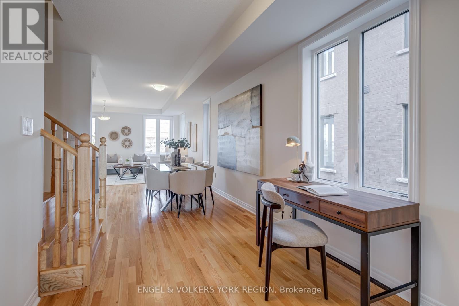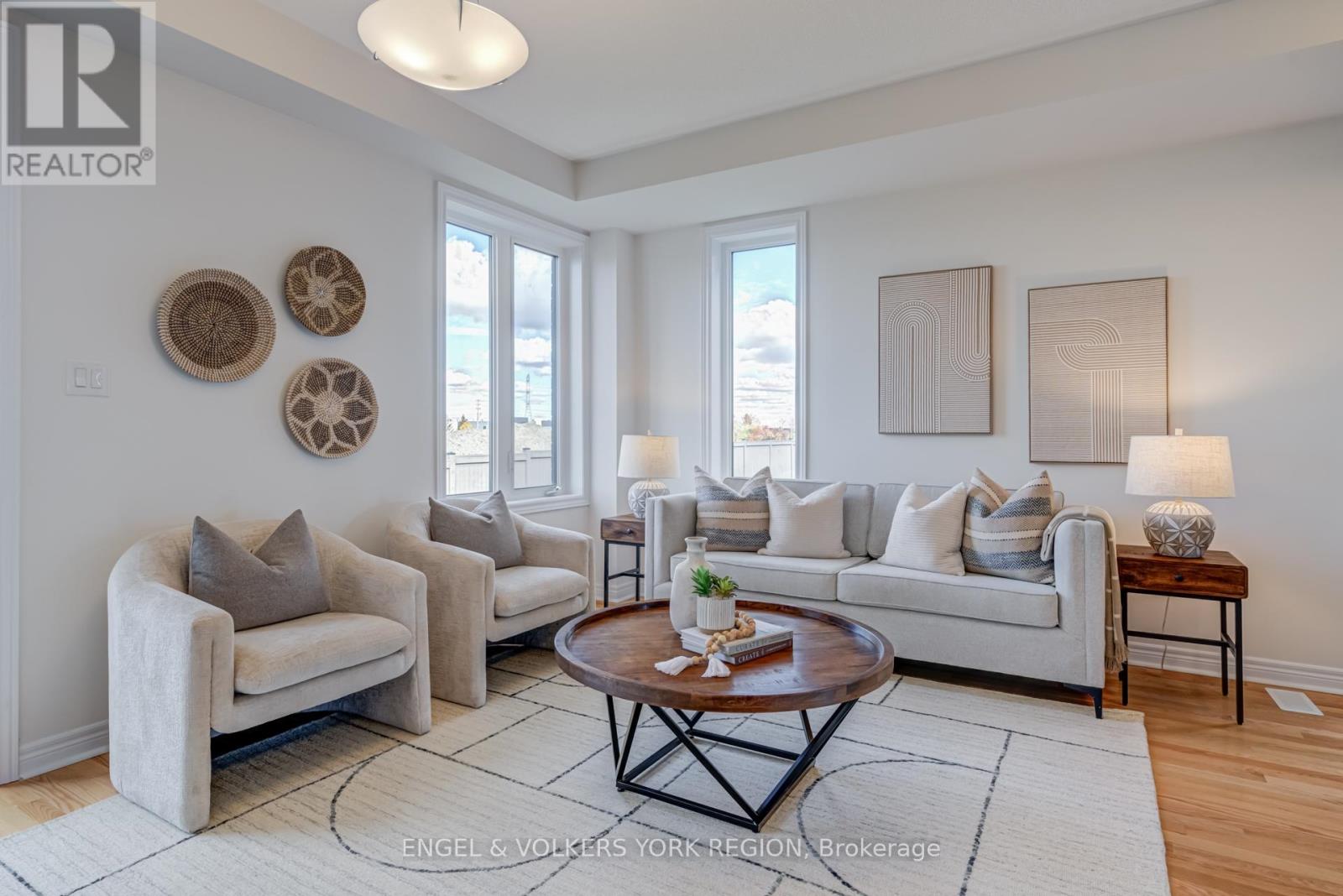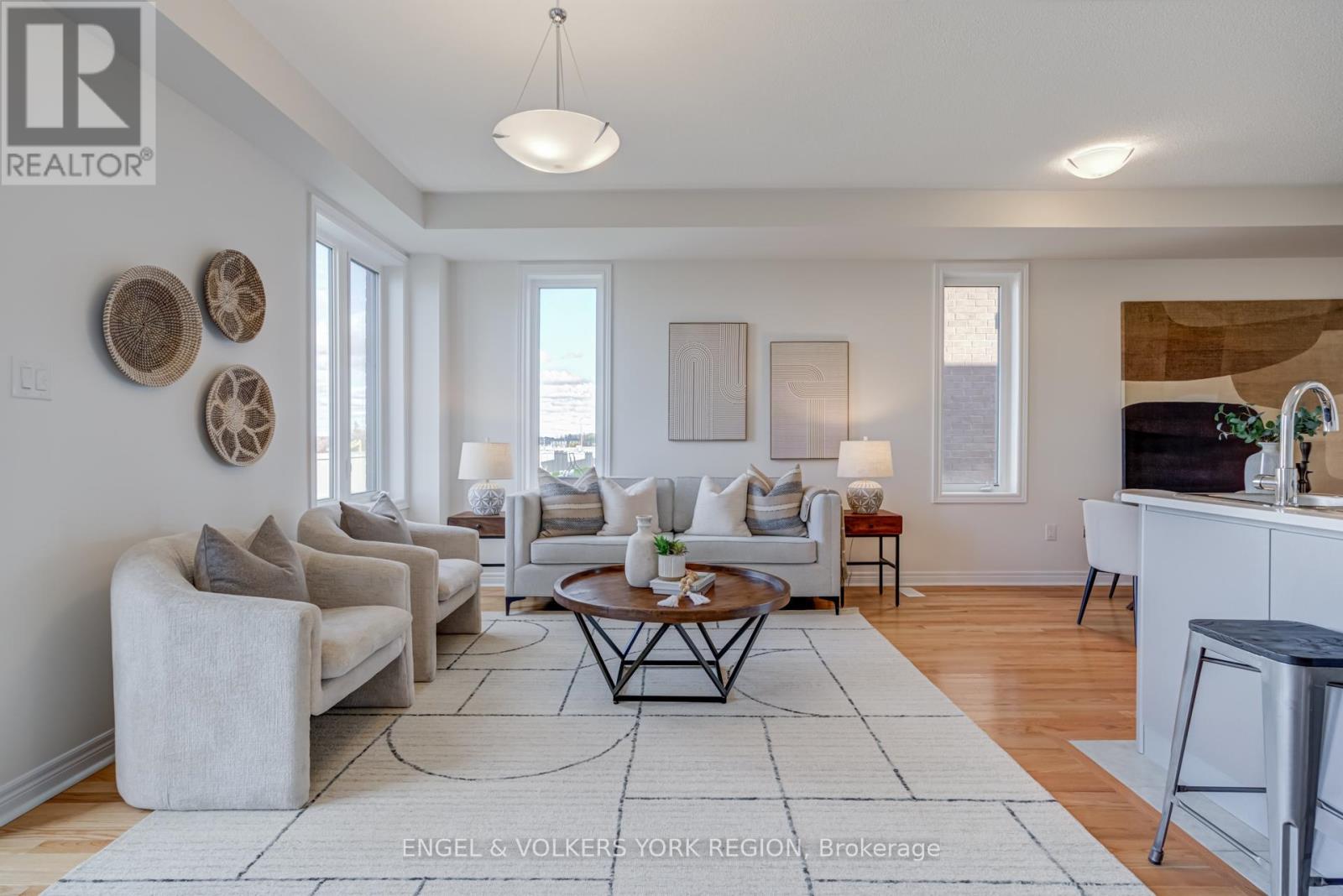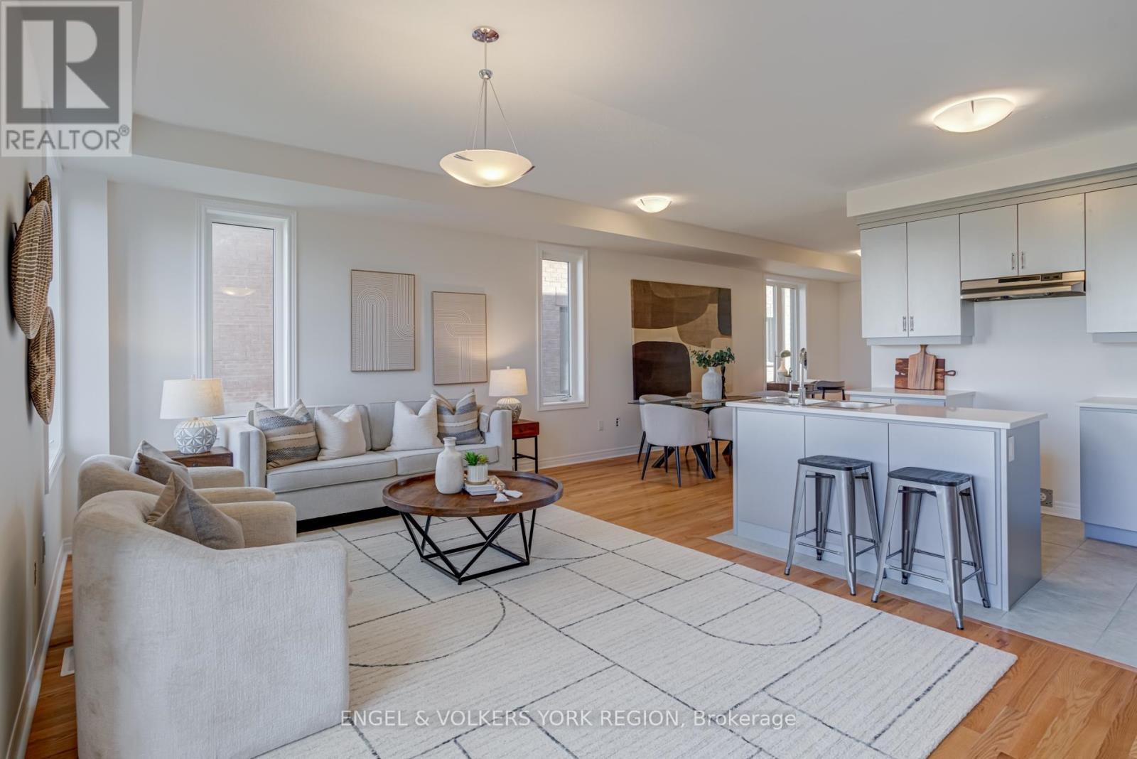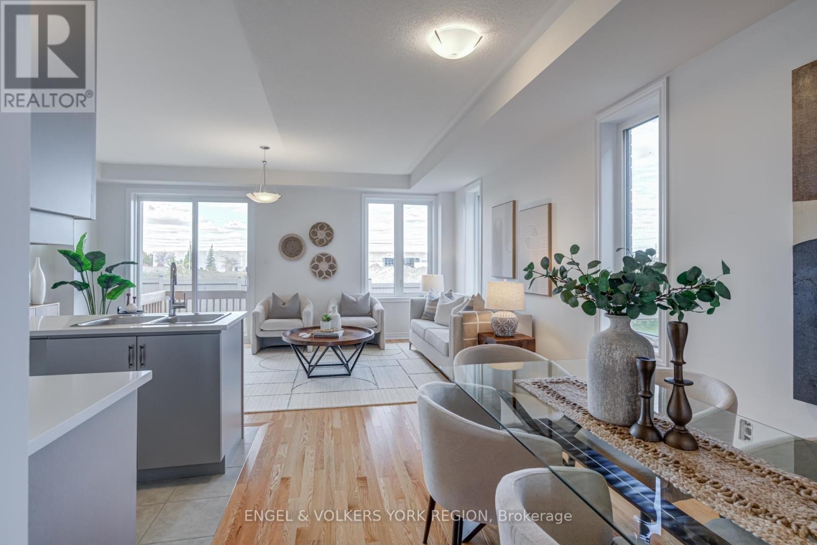 Welcome to this new elegant freehold luxury townhome, crafted by the acclaimed Remington Group. This end unit offers 1,933 square feet of beautifully designed living space that feels bright, open, and inviting from the moment you step inside. Expansive side windows flood the home with natural light, while 9 foot ceilings on both levels create an airy and elevated feel. The kitchen blends form and function with granite countertops, tall cabinetry, a central island, and a sleek stainless steel hood fan. Hardwood floors flow through the main level, adding warmth and timeless character. Upstairs, the primary bedroom is spacious and thoughtfully designed with double closets and a freestanding tub in the ensuite, offering a touch of everyday luxury. Each bedroom has a walk in closet, while the primary offers his and hers, creating a beautifully organized and comfortable living space. The backyard offers peaceful green space, perfect for slow mornings, family gatherings, or quiet evenings. This location places you steps from the Aaniin Community Centre, top schools, transit, major highways, trails, and golf clubs, bringing convenience and lifestyle together. (41544064)