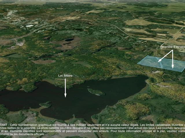 Superbe terre à bois composée de deux lots, située tout près du lac Moore. En partie adossée aux terres publiques, elle offre un accès privilégié à un vaste territoire naturel. Le sentier de VTT passe sur le chemin devant la propriété et le sentier de motoneige se trouve à proximité, faisant de cet endroit un paradis pour les amateurs de plein air. La terre, d'une beauté remarquable, présente un potentiel exceptionnel pour vos projets forestiers, récréatifs ou résidentiels. Un lieu à découvrir! GST/QST must be added to the asking price (43623428)