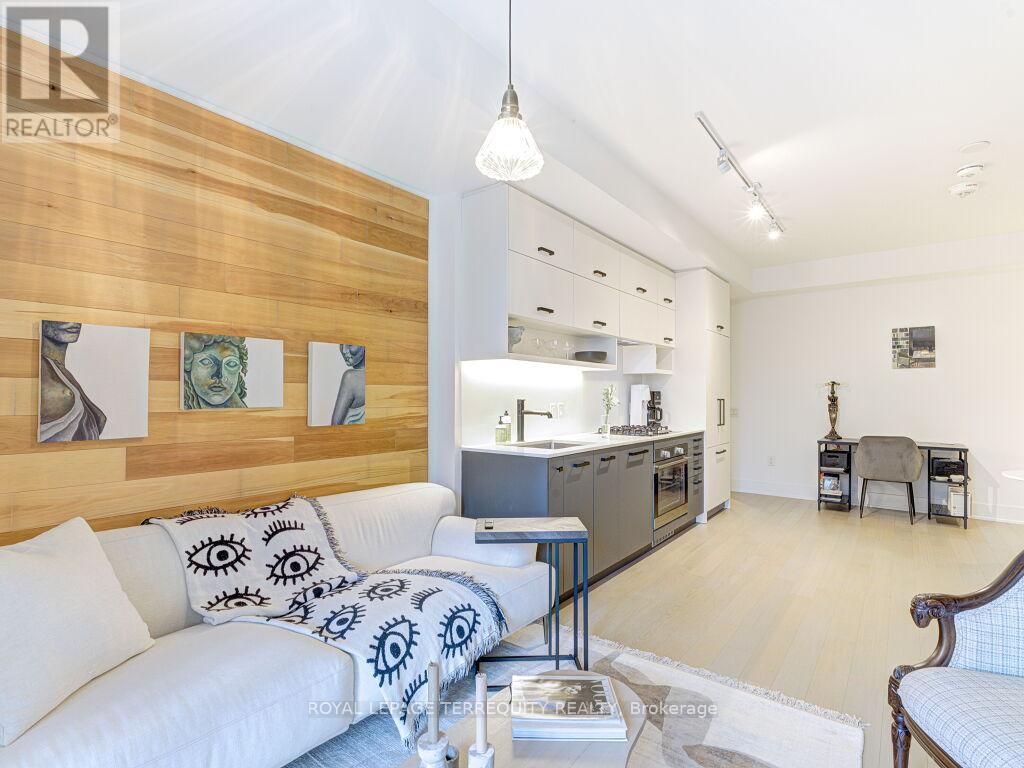 Welcome To Heartwood, Where Modern Living Meets The Relaxed Charm Of The Beaches. This 1 Bedroom, 1 Bathroom Suite Is Bright, Inviting And Thoughtfully Designed. The Perfect Place To Call Home. Step Outside To Your Spacious 218 Sq. Ft. Covered Terrace With Sunny South-Facing Views Of Lively Queen Street East, Accessible From Both The Living Room And Bedroom Making It Ideal For Morning Coffee Or Evening Gatherings With Friends. Inside, You'll Love The Upgraded Kitchen And Bathroom Cabinetry, Quartz Countertops And Modern Backsplash That Give The Space A Warm, Polished Feel. The Suite Also Includes 5-Burner Gas Stove, Gas Wall Oven, Dishwasher And A Gas BBQ Hookup On The Terrace. Perfect For Year-Round Entertaining. Natural Light Pours In Through Large Windows, Creating An Open And Airy Atmosphere That Feels Instantly Welcoming. Walking Distance From Woodbine Beach, Woodbine Park, Ashbridge Volleyball Court, The Boardwalk, And A Variety Of Local Cafés, Restaurants, And Shops, This Home Offers The Best Of Beachside Living With All The Conveniences Of The City At Your Doorstep. (41547109)