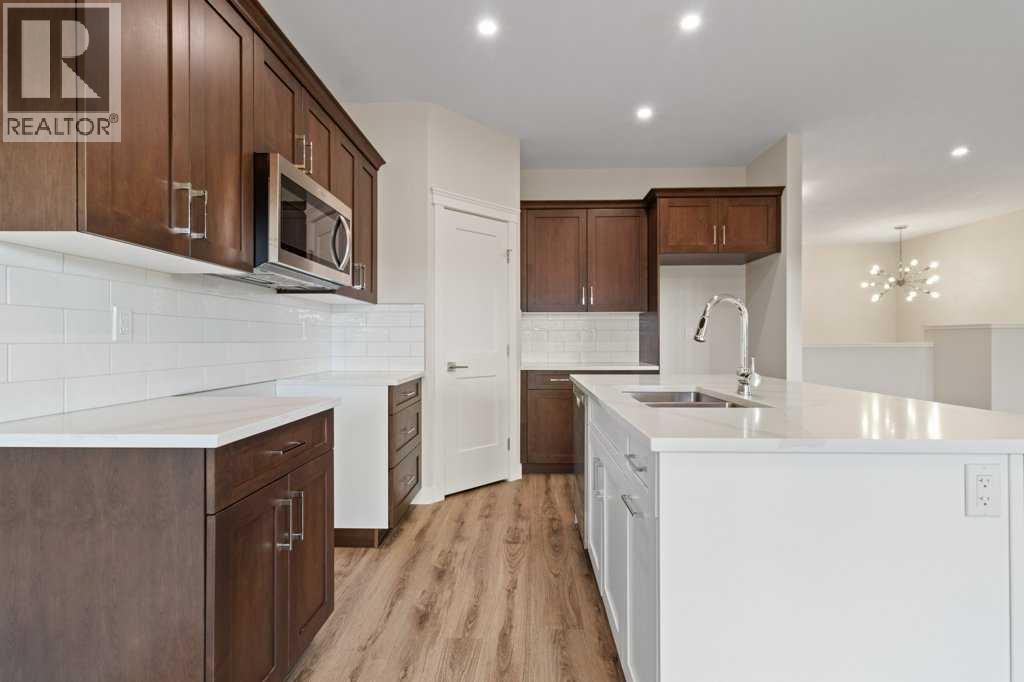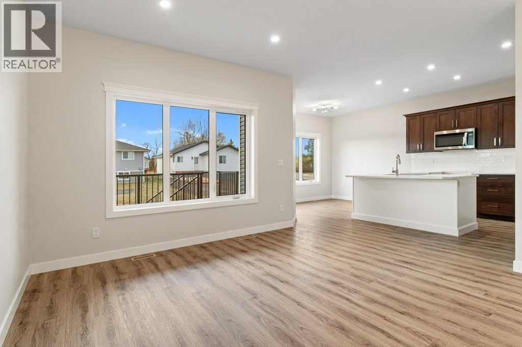 Welcome to the charming and growing town of Bentley, where small-town warmth meets easy access to an abundance of recreational amenities. Surrounded by beautiful lakes, beaches, golf courses, ski hills, natural areas, and scenic trails, this community offers a lifestyle that’s both active and relaxing. This brand-new 1,121 sq. ft. bi-level home showcases modern design and quality craftsmanship throughout. The inviting covered front entry leads into a bright, open-concept living space featuring 9-foot ceilings, upgraded flooring, and large triple-pane low “E” windows that fill the home with natural light. The stylish kitchen includes an island with seating, quartz countertops, a pantry, and built-in dishwasher and microwave. The builder is offering the new homeowner a $4,000 appliance allowance plus GST, providing the opportunity to select their own appliances to perfectly suit their style and needs. The spacious primary bedroom offers a walk-in closet and a private 3-piece ensuite, while a second bedroom and a 4-piece main bath complete the main level. Convenient main floor laundry adds everyday functionality. The lower level boasts 9-foot ceilings and offers the option to be professionally finished to suit your needs. Additional highlights include R-24 walls, a high-efficiency two-stage furnace with HRV, a covered rear deck, and the potential for rear lane access and a detached garage. The lower level boasts 9 foot ceilings and offers 2 bedrooms, 4 piece bathroom and family room to paint stage. Experience comfortable, efficient, and stylish living in this beautiful new home in Bentley. New Home Warranty Included. (31317334)