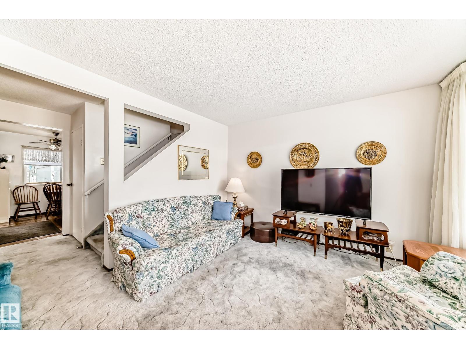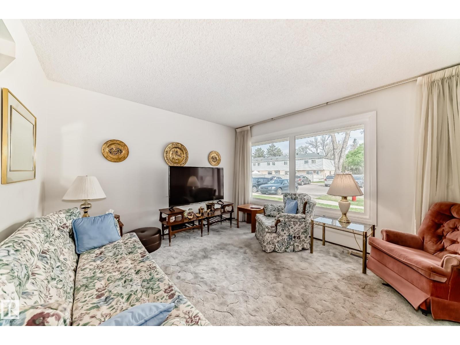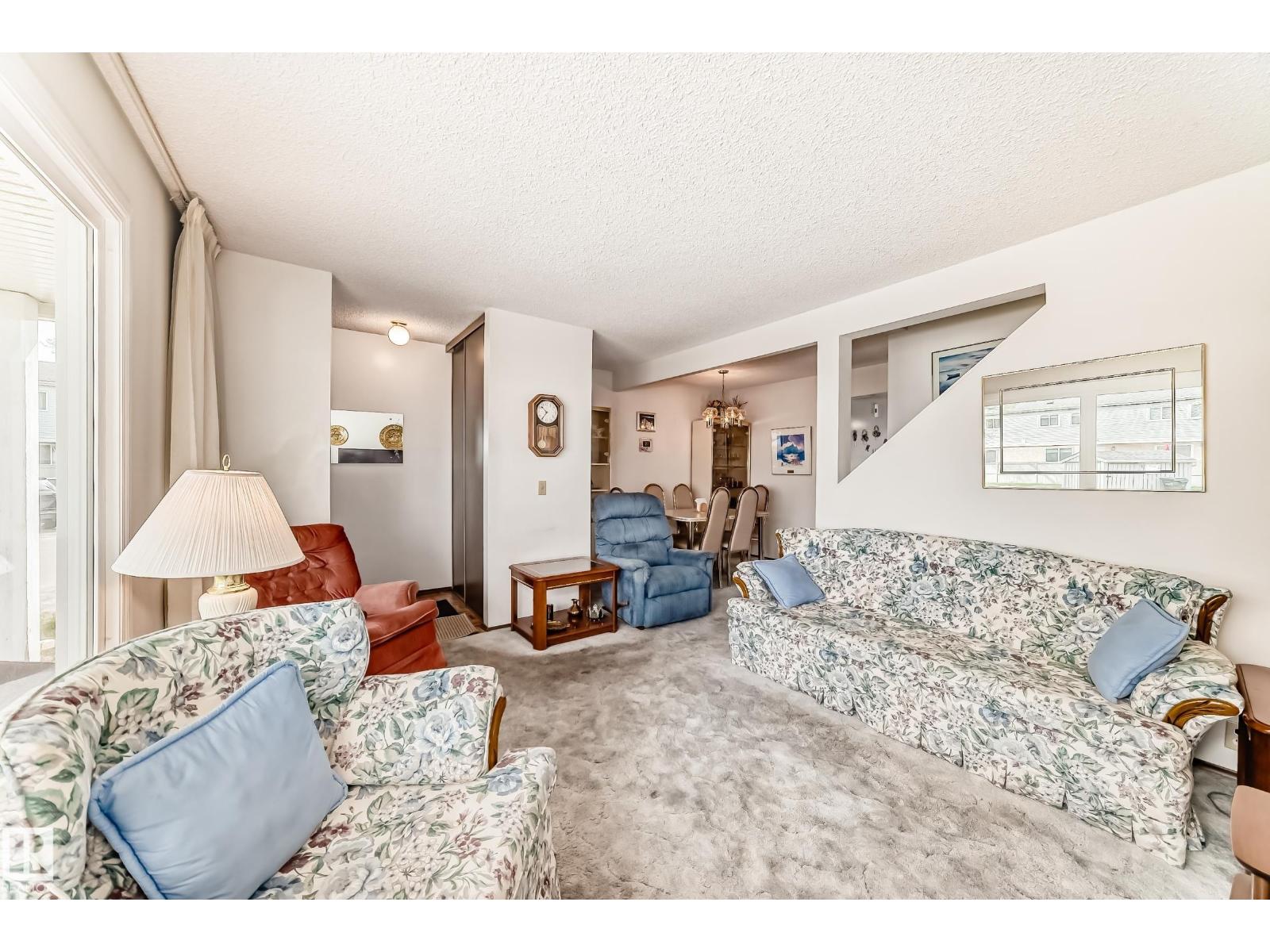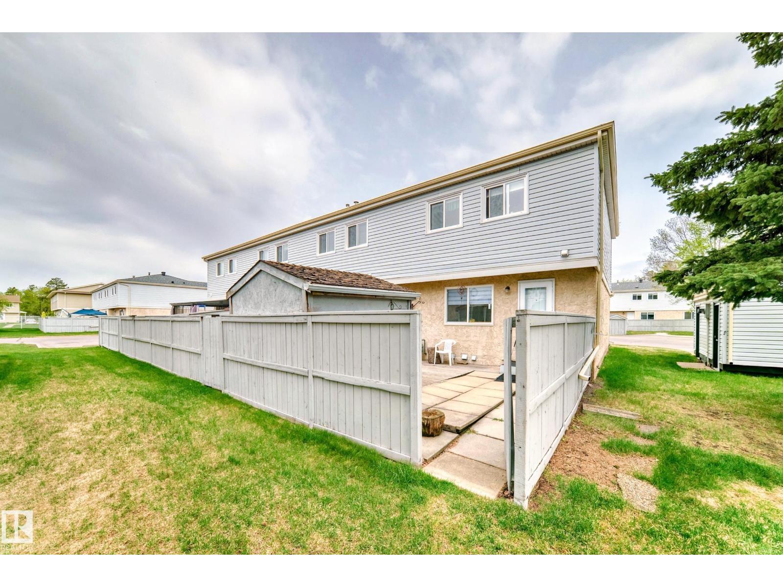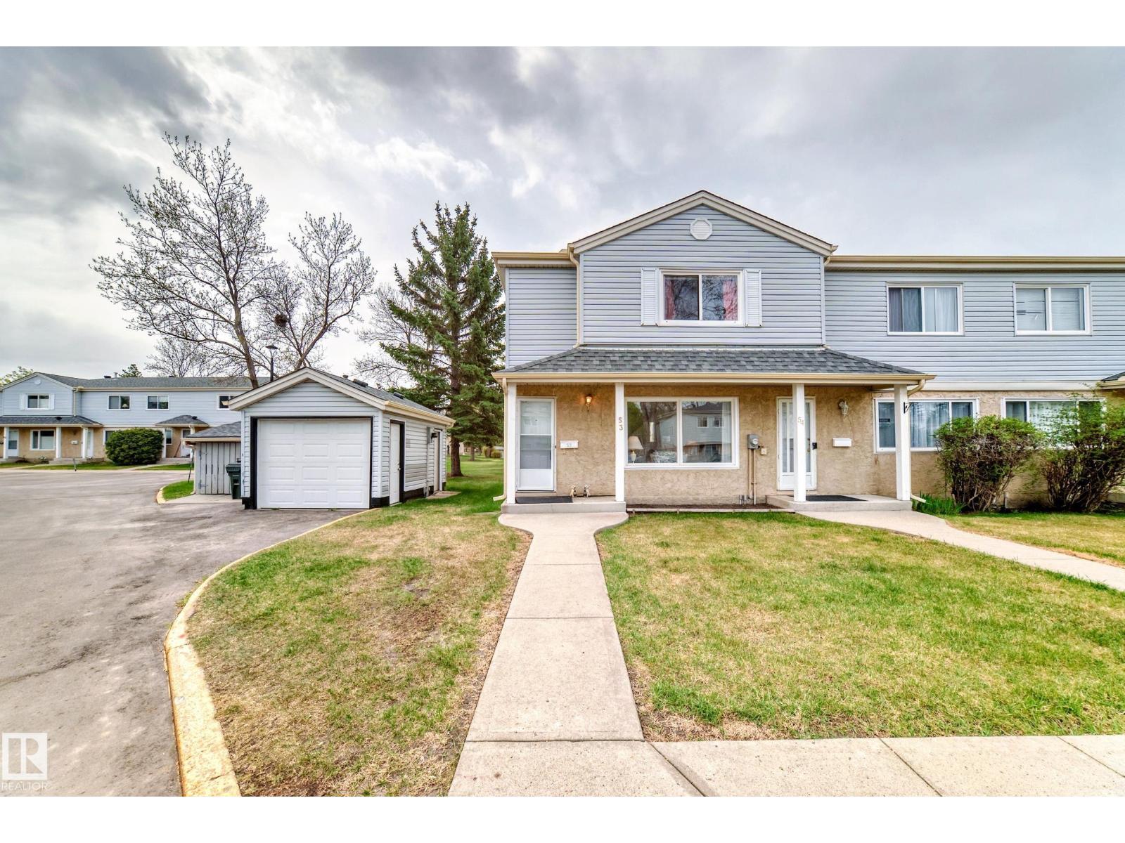 END UNIT!! Located in a desirable complex. This 3 bedroom 1.5 bath townhouse features a large living room and dining room area with lots of natural light, the kitchen is a good size with eat in area and a 2 piece bath. The upper level has 3 bedrooms and a 4 piece bath and the master is massive with a big closet. The basement is fully finished with a family room, storage room and nice size laundry/utility room. Two parking stalls right out front! The complex is just steps to Sherwood Park mall, Festival Place, Broadmoor golf course, Broadmoor lake, library and more. Being Pet Friendly and having low condo fees makes this a great home. (33517488)