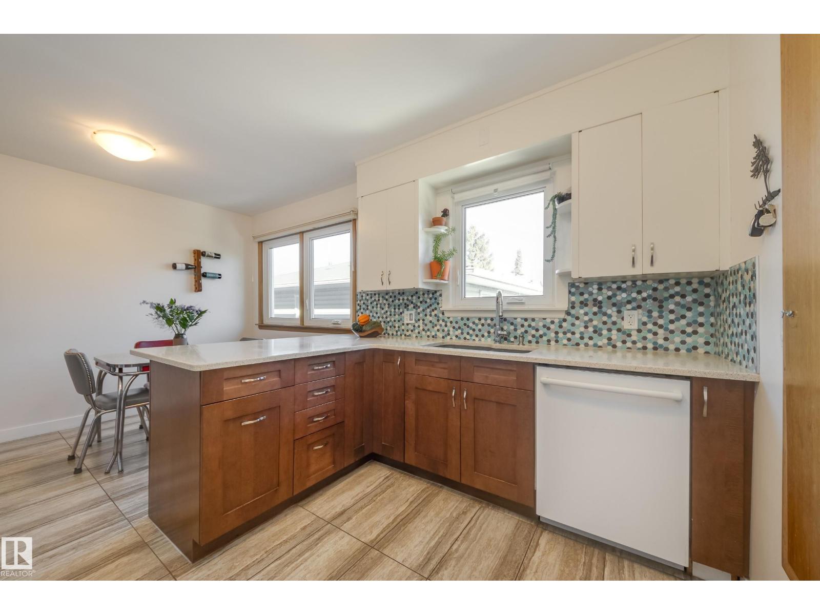 Facing Hazeldean Park! This FULLY FINISHED raised bungalow offers a total of 5 bedrooms, 2 full baths & over 2,300 sqft of total living space. Many upgrades over the years, w/ some original charm, such as the main level original hardwood flooring. RENOVATED kitchen(2017): quartz countertops, backsplash, wood/soft close lower cabinets & vinyl plank flooring. Generous bedroom sizes, primary can fit a king size bed & a RENOVATED 4 piece bathroom(2021) completes this floor. The basement w/ SEPARATE ENTRANCE: SECOND kitchen(upgraded 2021), large windows throughout w/ an abundance of natural light, huge rec room, 2 additional bedrooms(sound dampening between bedroom floors 2020), 4 piece RENOVATED bathroom(2021) & laundry area. Out back, fully fenced south facing backyard w/ an amazing garden, deck(2020), fruit trees & oversized double detached garage. ADDITIONAL UPGRADES: sidewalks(2021), Hunter Douglas Blinds(2020), Shingles(2019-2020), all windows/doors(2018), sewer line(2017) & electrical upgraded(2017). (33517628)