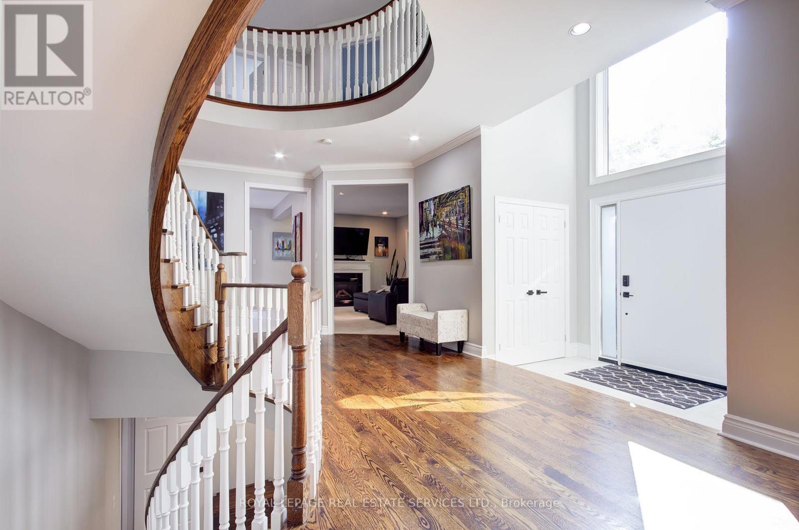 Welcome to 1079 Skyvalley Crescent ideally situated on a peaceful street surrounded by the natural beauty of 16 Mile Creek, scenic walking trails, Lyons Park, and just steps away from the iconic Glen Abbey Golf Club, host of the Canadian Open. This home makes an immediate impression with its mature, professional landscaping and ample parking, offering outstanding curb appeal. Step through the contemporary front entrance and be greeted by a striking interior featuring richly stained hardwood floors, a matching staircase, premium imported tiles, and a soaring two-story foyer that sets the tone for the rest of the home. At the heart of the home is a brand-new "Misani" kitchen, complete with high end professional appliances and custom millwork, a true showpiece and part of nearly $500,000 in recent high-end upgrades. Upstairs, a grand staircase leads to a spacious landing and an impressive primary suite with a walk-in closet and a luxurious, spa-like ensuite bathroom. Three additional generously sized bedrooms and two more fully renovated bathrooms showcase the home's commitment to quality and comfort. The finished lower level is an entertainers dream, featuring a custom bar, billiard area, rec/theatre room, full home gym, spa-inspired bathroom, and modern laundry facilities. Step outside to your own private backyard retreat complete with a full-sized Pioneer pool, cabana, multiple seating areas, fire pit, and secluded spa hot tub, making summer entertaining unforgettable. Additional recent upgrades include new triple-pane windows and custom doors throughout, an upgraded 200-amp electrical panel, modernized HVAC system, new garage doors with remote/ keypad access, and an extended driveway. A rare opportunity not to be missed! (41550884)