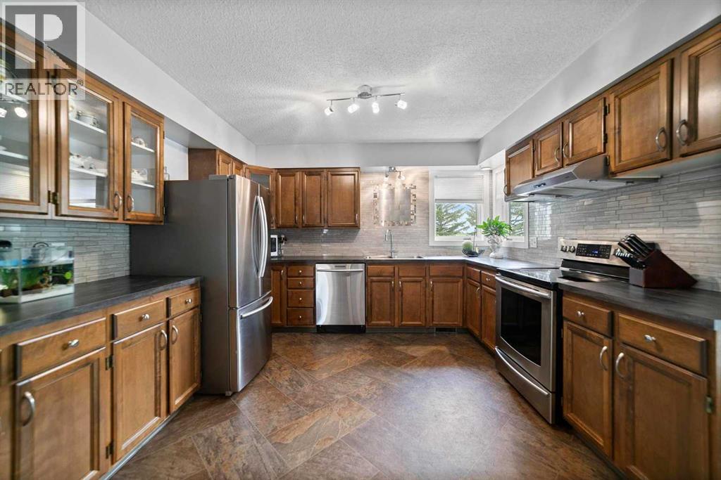 Nicely updated and maintained family home sitting on a corner lot siding farmlands with amazing views! This 5 bedroom, 2 bath bungalow is spacious with a massive updated kitchen/dining area. Right off of the dining area is a sliding patio door leading to a large covered deck. The sunken living room is bright and airy, well laid out with a bay window. The main bath was renovated with a walk-in shower as well as a nice soaker tub. To top it all of the laundry is on the main floor for convenience. The basement is mostly finished (some flooring to be laid) with a sunken family room 2 bedrooms and a 3pc bath. Shingles were replaced in 2022, newer HE furnace and hot water tank. (31324836)