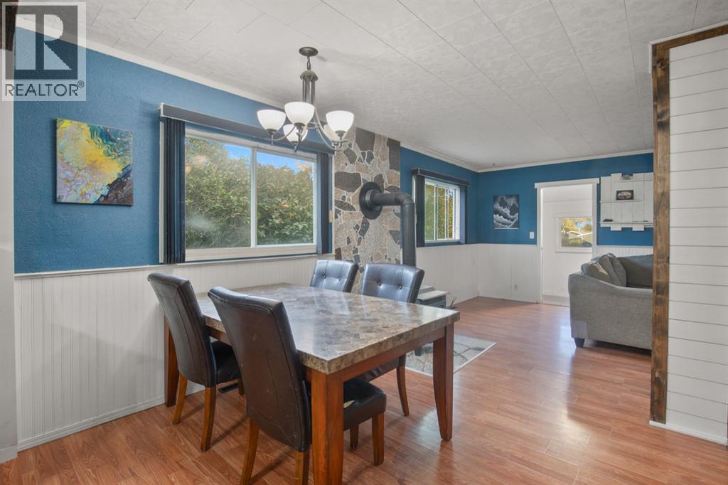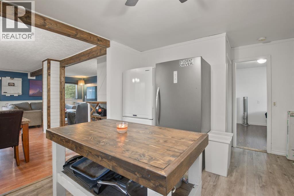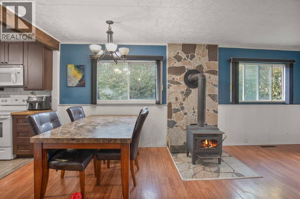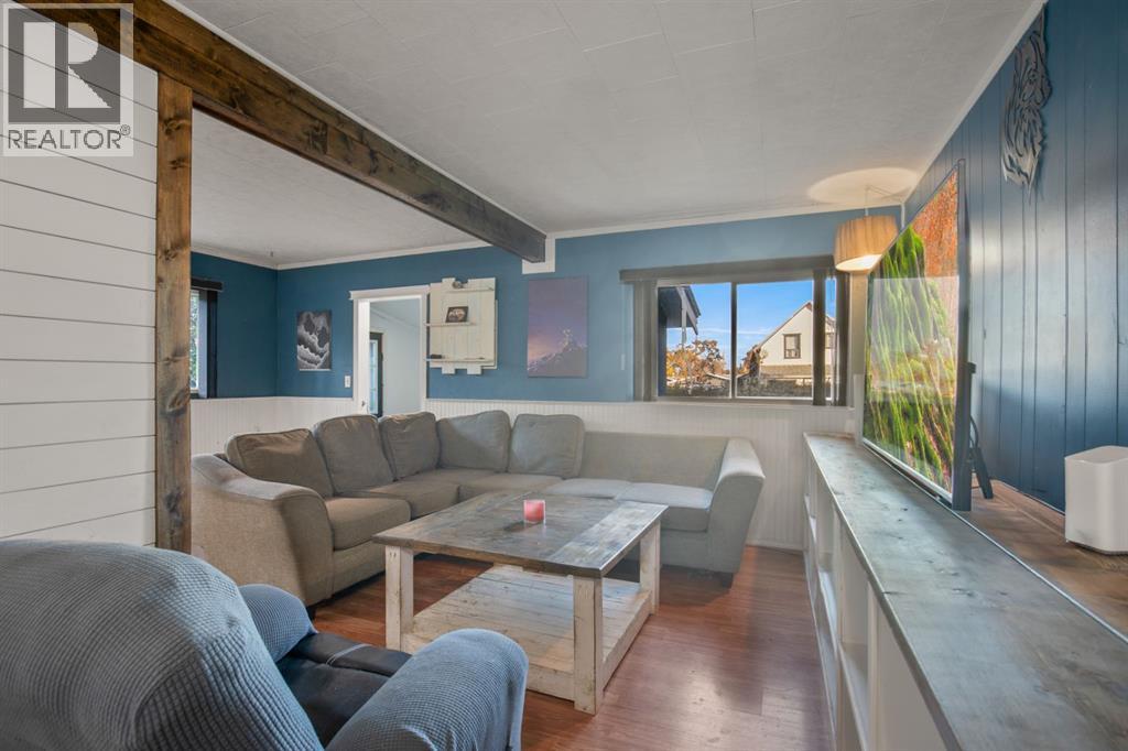 This charming 1946 bungalow blends timeless character with thoughtful modern updates, set on a spacious 6,000 sq ft lot in the heart of Bowden. Framed by mature hedges for privacy, the home welcomes you with a west-facing front deck and a generous entry foyer. Inside, the open-concept dining area flows into both the updated kitchen and cozy living room. Rustic wood beams and a wood-burning stove with a striking stone mosaic surround create a warm, inviting atmosphere.The kitchen features dark cabinetry, a modern white pantry, butcher-block countertops, a farmhouse sink, tile backsplash, a centre island, and an almost-new dishwasher. Three bedrooms, including a spacious primary, and a fully updated 4-piece bathroom complete the main floor. Recent updates include a new washer and dryer, new central vacuum system, re-shingled front porch, furnace servicing, and a new hot water tank. An upgraded electrical panel and service are also planned.Out back, a fully enclosed breezeway connects to a single detached garage and a large storage room. The south-facing backyard is fully fenced—ideal for pets, gardening, or simply relaxing in the sun. A rear parking pad provides extra room for vehicles, a trailer, or RV. The durable metal roof on the main house adds long-term peace of mind, and the Bowden Golf Course is just a short walk away. A great opportunity for first-time buyers, investors, or anyone looking for a move-in-ready home with character, comfort, and lasting value. (31325801)
