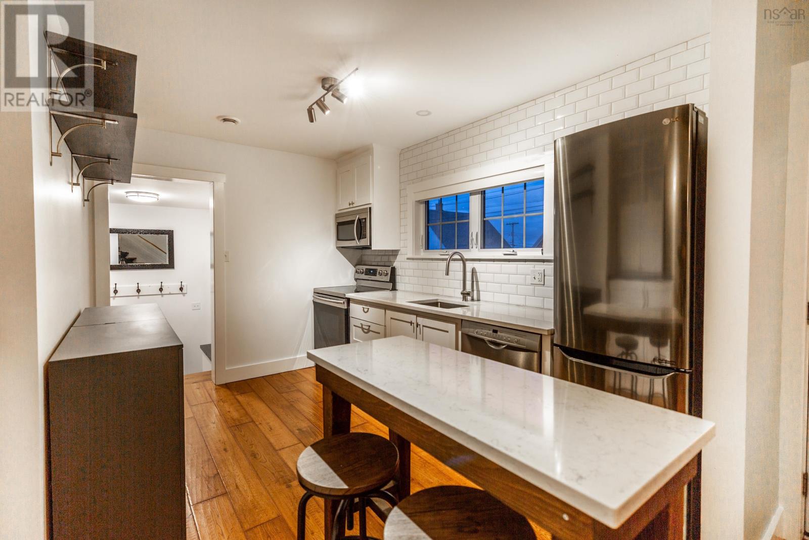 Nestled in the picturesque town of Lunenburg, this low-maintenance, well-maintained, updated-modern home offers the perfect blend of contemporary comfort mixed with the historic charm of the town. Located just minutes from the vibrant waterfront, local shops, art galleries, and renowned restaurants, this home is ideal for those seeking a relaxed lifestyle with all the modern amenities. Featuring clean lines, spacious living areas, and a thoughtful open floor plan, this home is a true sanctuary which ensures comfort and ease of living. Whether you're hosting friends or enjoying quiet moments, the homes large windows and skylights flood the space with natural light. The cozy bedrooms provide a restful retreat, while the modern bathrooms are elegantly designed with high-end fixtures. The modern kitchen and dining/living area are open to an airy loft equipped with custom shelving, accessed by a modern custom staircase. Step outside to a beautifully landscaped yard with minimal upkeep, allowing you more time to enjoy the stunning scenery and the peaceful pace of life in Lunenburg. (231584976)