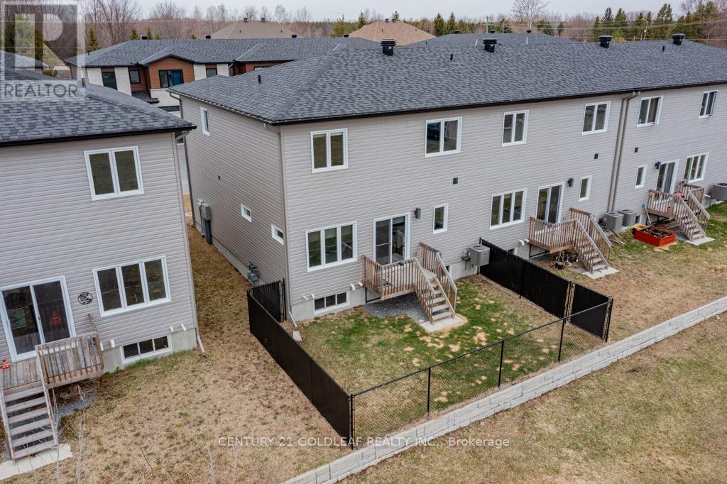 Located in the growing community of Limoges, a short walk from Rodolphe Latreille Park and minutes from a brand-new Sports Complex, the Larose Forest and the Calypso Water Park this end-unit townhome offers a modern decor aesthetic and style creating the perfect combination of casual and formal. Upgraded lighting and newly decorated this immaculate home is move in ready and awaits its next owner! The open-concept layout features a spacious and well-designed kitchen with quartz countertops, an oversized breakfast island, upscale stainless steel appliances and crisp white cabinetry that go right up to 9' ceilings. The center piece of the generously sized living room is a reclaimed wood mantle feature wall. The patio door takes you from the kitchen/living room to the fully fenced south facing yard overlooking park like open space. The dining area is perfect for entertaining. The main floor powder room is located off the main level foyer, convenient but out of the main space. At the top of the bright open staircase, flooded with natural light from an expansive window, is an open loft area, the perfect spot for a home office. The luxurious master suite has a generously sized walk-in closet and a spa-like upgraded ensuite bathroom with walk-in shower. The two other bedrooms are very spacious and bright. The second level laundry room ensures that laundry day is a breeze. The easily finish-able lower level has big windows ste apart to allow for another bedroom if required. The double wide driveway offers parking for two cars plus one in the spacious garage lit by a large mullion window. (41558437)
