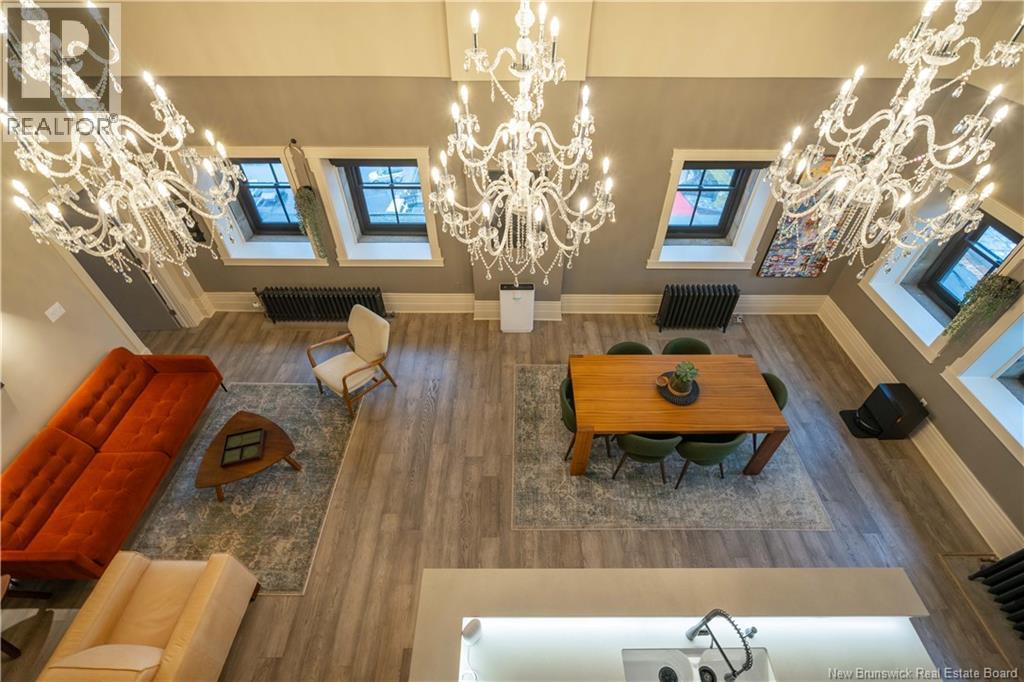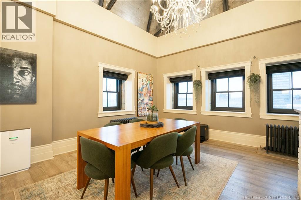 Discover an exceptional penthouse suite at Saint Johns most prestigious condominium, offering over 2,000 square feet of refined living space. This unique residence blends industrial influences with elegant traditional design for a contemporary yet timeless atmosphere. The suite features a spacious primary bedroom with ensuite, a second large bedroom, and a modern main bath. Ideal for entertaining, the open-concept kitchen flows into a bright dining and living area. A gentle staircase leads to a versatile loft with a family room and additional space for relaxation or creativity. Premium amenities include generous storage, panoramic views of the harbour and Bay of Fundy, assigned parking with integrated storage, and extra storage at the parking level. Recent upgrades such as Marvin triple pane windows and remote-control blackout blinds ensure comfort, efficiency, and privacy. Located in Saint Johns most photographed building, at the iconic corner of Princess and Prince William streets, this address has represented elegance since 1877. The well-managed, financially sound condo community guarantees a high standard of living rarely found elsewhere in New Brunswick. Experience luxury, history, and urban convenienceschedule your viewing today. (29189930)