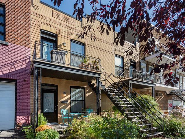 Discover this magnificent ground floor condo, offering 583 sq. ft. of well-designed comfort. It includes 1 bedroom, 1 bathroom, and an impressive private terrace of over 260 sq. ft., perfect for enjoying sunny days. This condo stands out for its unique and warm style, thanks to a magnificent exposed concrete wall and beautiful wooden beams on the ceiling. Ideally located just a 5-minute walk from the metro and Jean-Talon Market, this location puts you in the heart of one of Montreal's most sought-after neighborhoods. Unit renovated from top to bottom: floors, soundproofing, kitchen, bathroom, etc. (54186385)