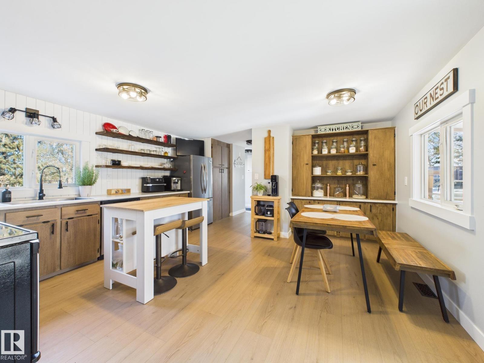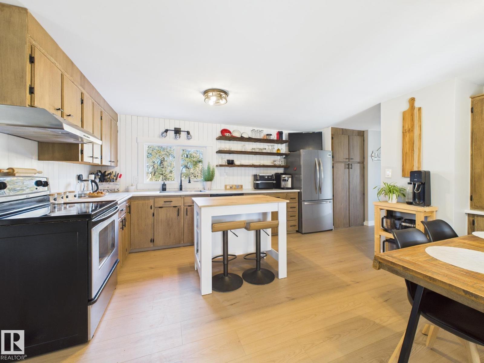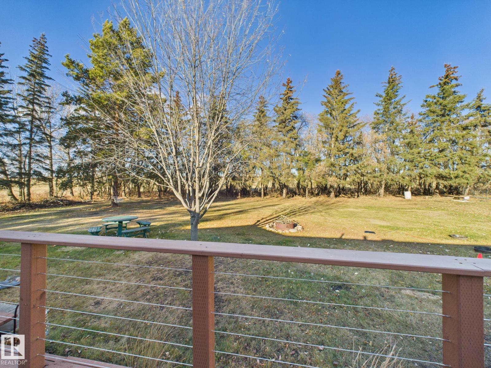 LOCATION LOCATION LOCATION! This beautifully renovated home sits on a stunning 1.5 acre property less than a kilometer from Hwy 2 between Morinville and St. Albert. Surrounded by mature trees, it offers peace, privacy, and space to enjoy the outdoors with family and friends. Imagine relaxing on the large south-facing covered front deck or hosting gatherings on the huge back deck overlooking this serene setting. Inside, the home is bright and inviting with big windows, vinyl plank flooring, and a flowing layout. You’ll love the three spacious bedrooms with generous closets and two gorgeous new bathrooms. Updates completed in 2025 include fresh paint, baseboards, both bathrooms, new light fixtures throughout, new front and back doors, a new kitchen entry door, and new balcony window. The oversized heated double garage is perfect for hobbies, storage, or parking. This property is the perfect blend of country charm and modern living just minutes from city conveniences. (33528328)