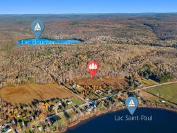 Cette terre de 77 acres combine à la perfection nature, tranquillité et opportunité d'investissement. Située en façade de la rue principale et desservie par l'aqueduc municipal, elle offre la possibilité de subdiviser quelques terrains. La propriété se distingue par son emplacement stratégique et ses panoramas à couper le souffle. À l'arrière, la terre est bordée par le paisible Lac Boucher, parfait pour les amateurs de plein air, de pêche ou de détente au bord de l'eau. En façade, elle offre une vue imprenable sur le majestueux lac Saint-Paul, un spectacle naturel qui change au fil des saisons et rehausse la valeur de ce site rare. (57579694)