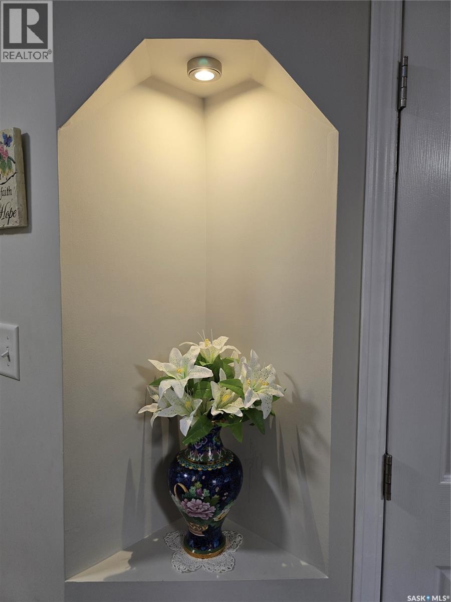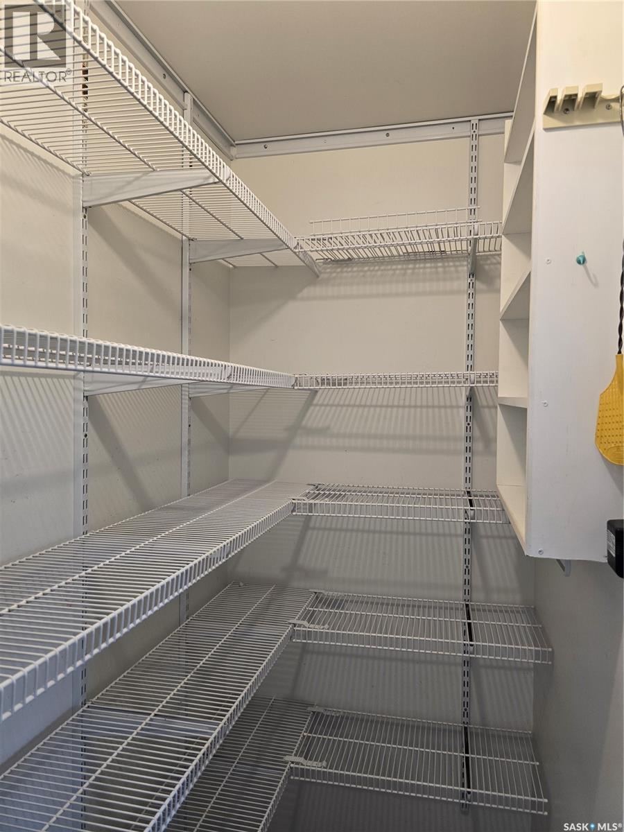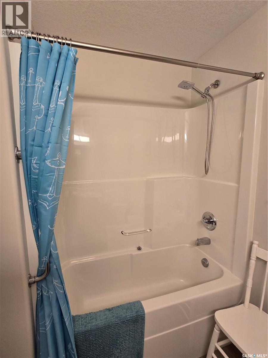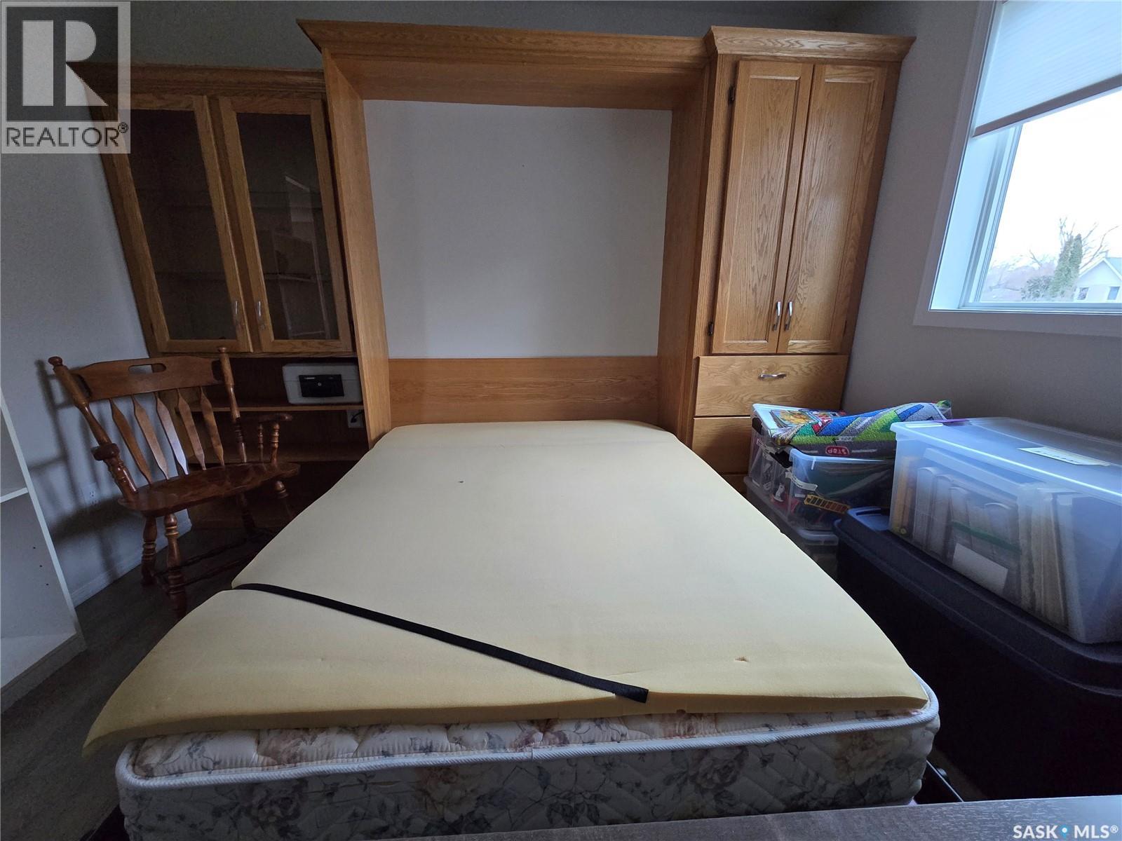 Move in before winter sets in! Quick possession is possible! Welcome to this sunny, south facing, second floor corner unit in Birch Place Condos in Watrous. This updated 1,108 sq. ft. unit was built in 2001. The open kitchen, dining, and living room area makes this condo feel spacious. Vinyl plank flooring is laid throughout the unit. The master bedroom features a large closet and 3-piece ensuite. The main bathroom has a tub/shower with grab bars. The second bedroom contains an oak wall unit with fold down murphy bed making it roomy and versatile. Off the living room is a door leading to a sunny, south facing balcony. The large laundry room has a built-in fold down ironing board. Other unique features are a lighted wall niche and a sun tunnel in the foyer that provides natural light to the entrance. A pantry off the kitchen allows for extra storage. A large 10'8" x 26'6" garage stall with 7' (h) x 9' (w) door is included in the ground level heated parking garage off the back alley. A storage unit is also located in the garage area. This building is wheelchair accessible and contains an elevator. Call your agent for a viewing! Please Note: Seller is NOT interested in renting until condo sells. (29087336)