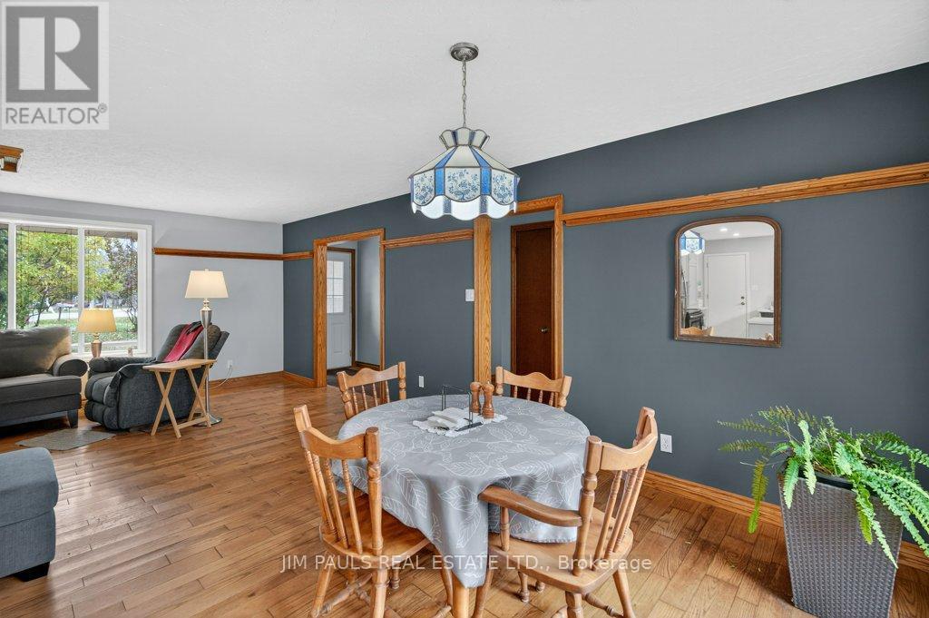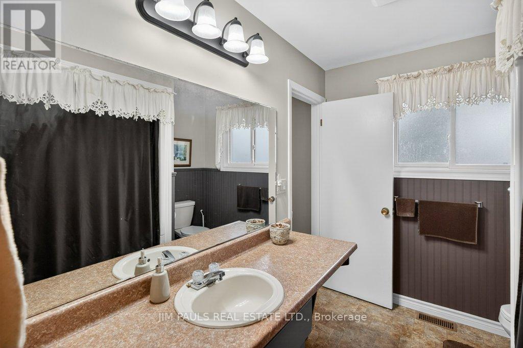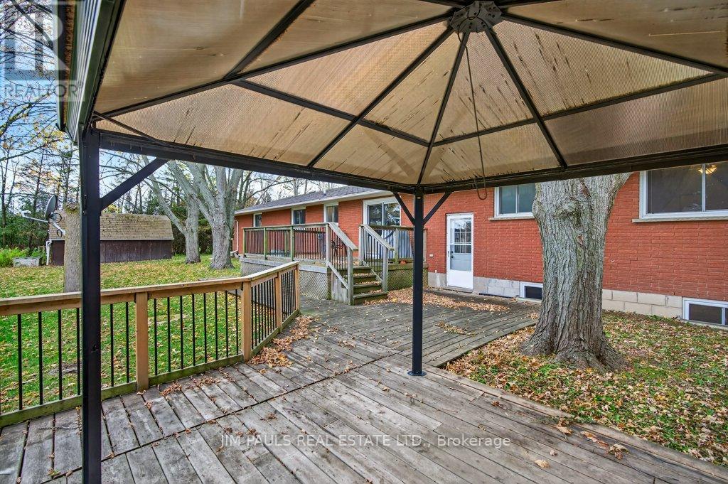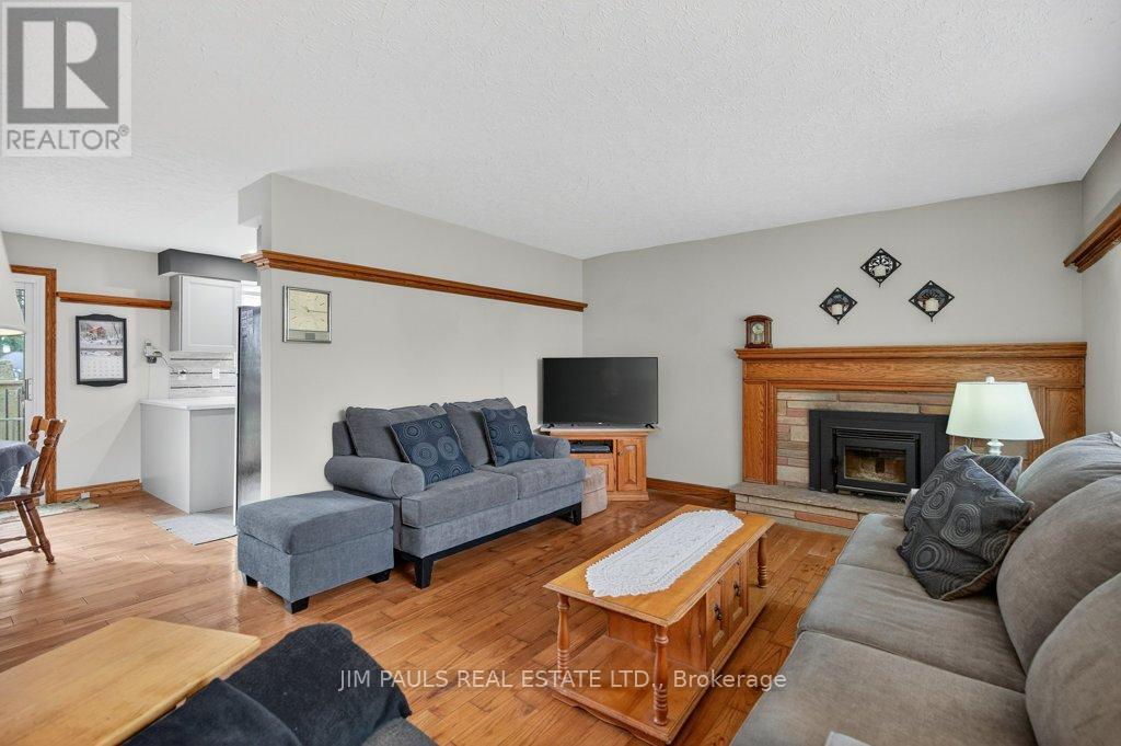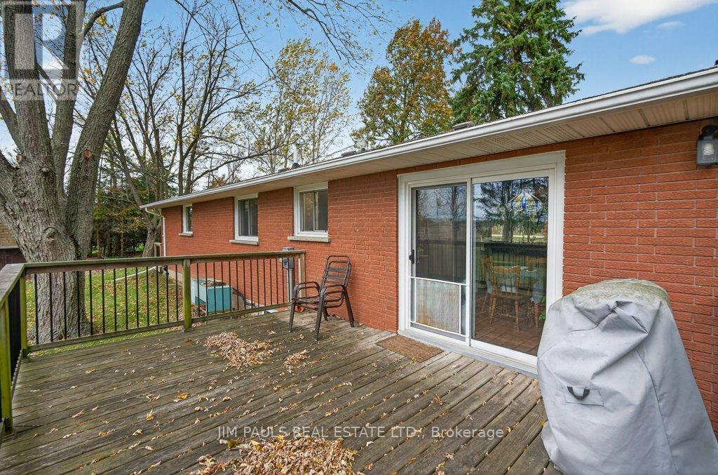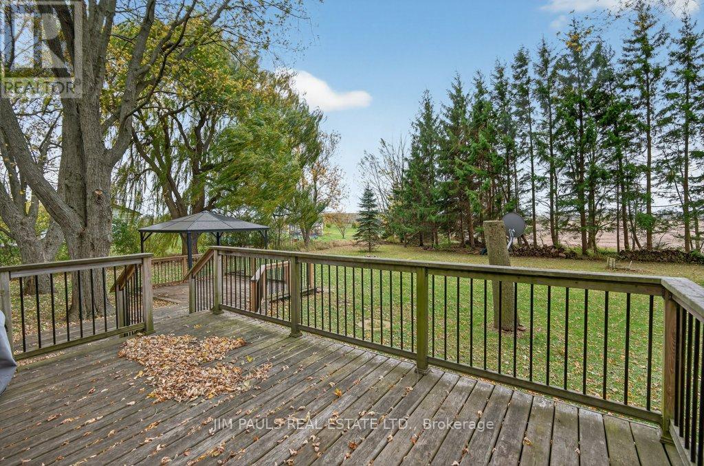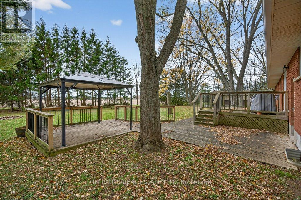 Welcome to this beautiful all-brick bungalow, perfectly nestled on just over an acre and surrounded by mature trees that provide exceptional privacy and a peaceful country feel. This property combines comfort, space, and natural beauty, with plenty of room to enjoy both inside and out.Step inside to discover a warm and welcoming home. The large living room features hardwood floors, a picture window that floods the space with natural light, and a cozy wood-burning fireplace with an updated insert. The adjacent dining area features patio doors that lead to a spacious two-tier deck, ideal for outdoor dining, entertaining, or simply enjoying the peaceful backyard views.The updated kitchen offers plenty of cupboard and counter space, a built-in desk area, and convenient inside access to the garage.There are three generously sized bedrooms, each with a closet, a 4-piece bathroom with ensuite privileges to the primary bedroom, and a second 3-piece bathroom for added convenience. The unfinished basement provides endless potential. With a walk-up to the garage and a separate entrance from the rear yard, it's an ideal setup for a future in-law suite, recreation area, or workshop. Foundation repair and exterior waterproofing completed in 2019. Outside, the possibilities are just as impressive. Enjoy a property large enough for a pool, gardens, or even a chicken coop. There's so much outdoor space to dream with and make your vision come to life. The peaceful surroundings and mature landscaping create a true sense of retreat.Over the years, the owner has thoughtfully maintained and updated the property, including the roof (2012), installation of gutter guards, a new asphalt driveway, updated pump and pressure tank, UV filtration system, wood fireplace insert, and a refreshed kitchen, among other improvements.If you've been looking for a home that offers space, privacy, and potential in a beautiful natural setting, this charming bungalow is one you won't want to miss. (41573074)