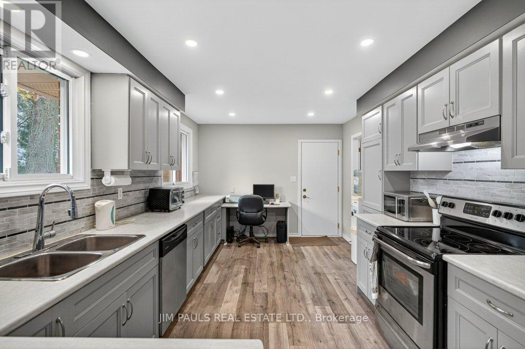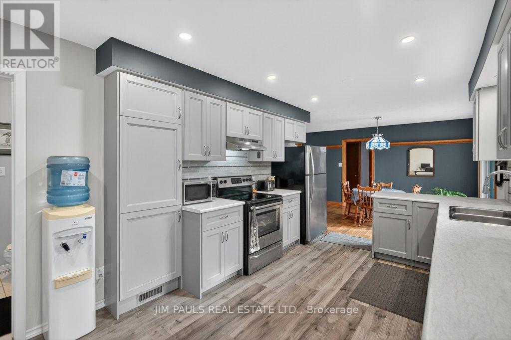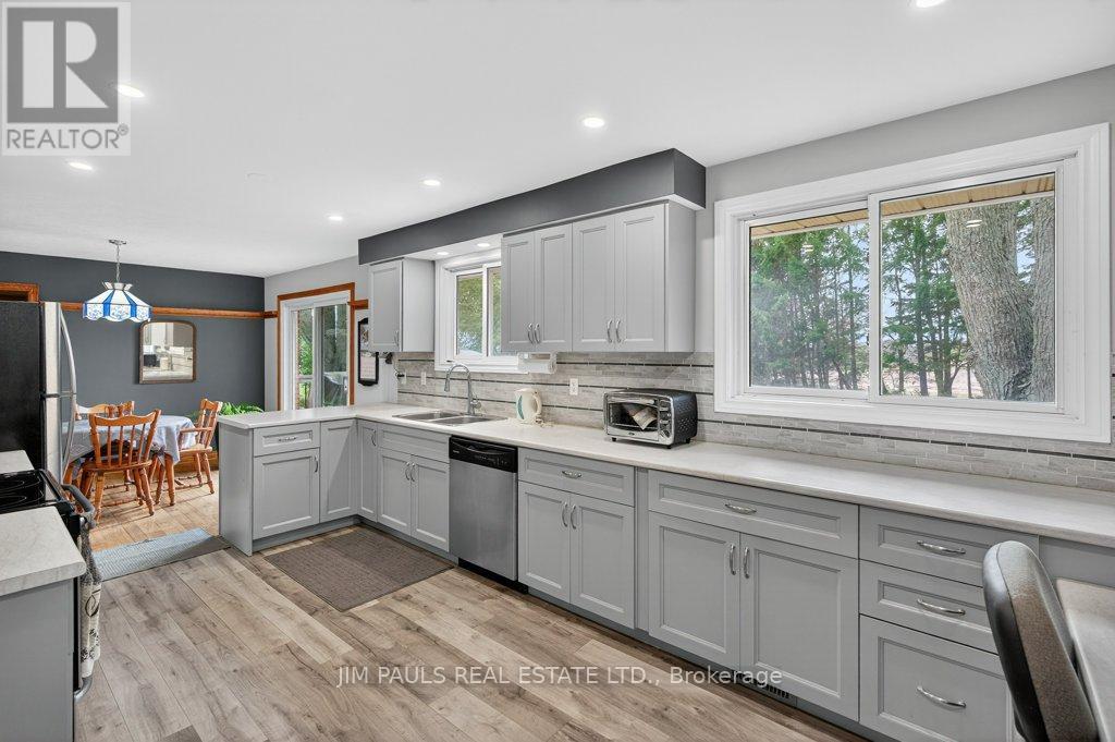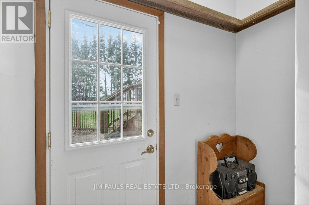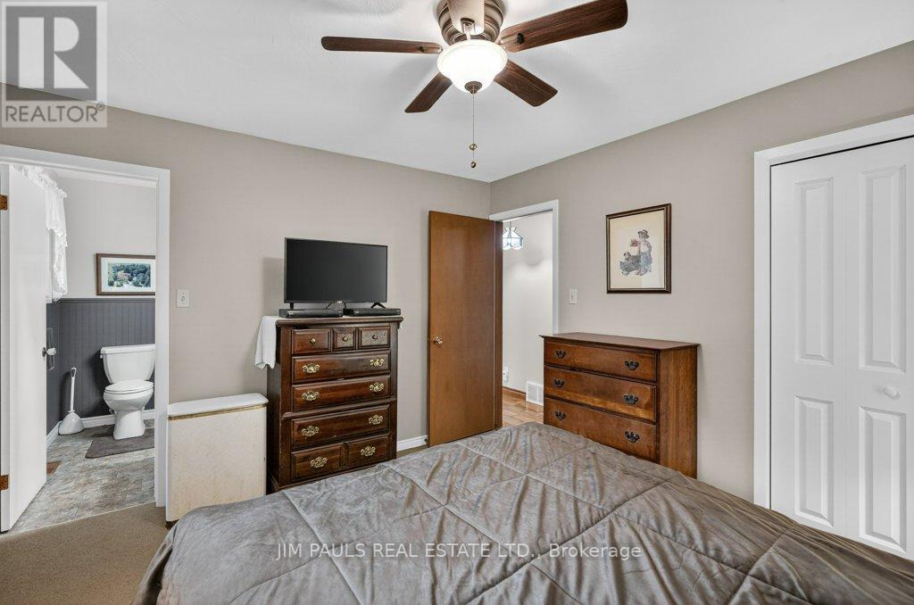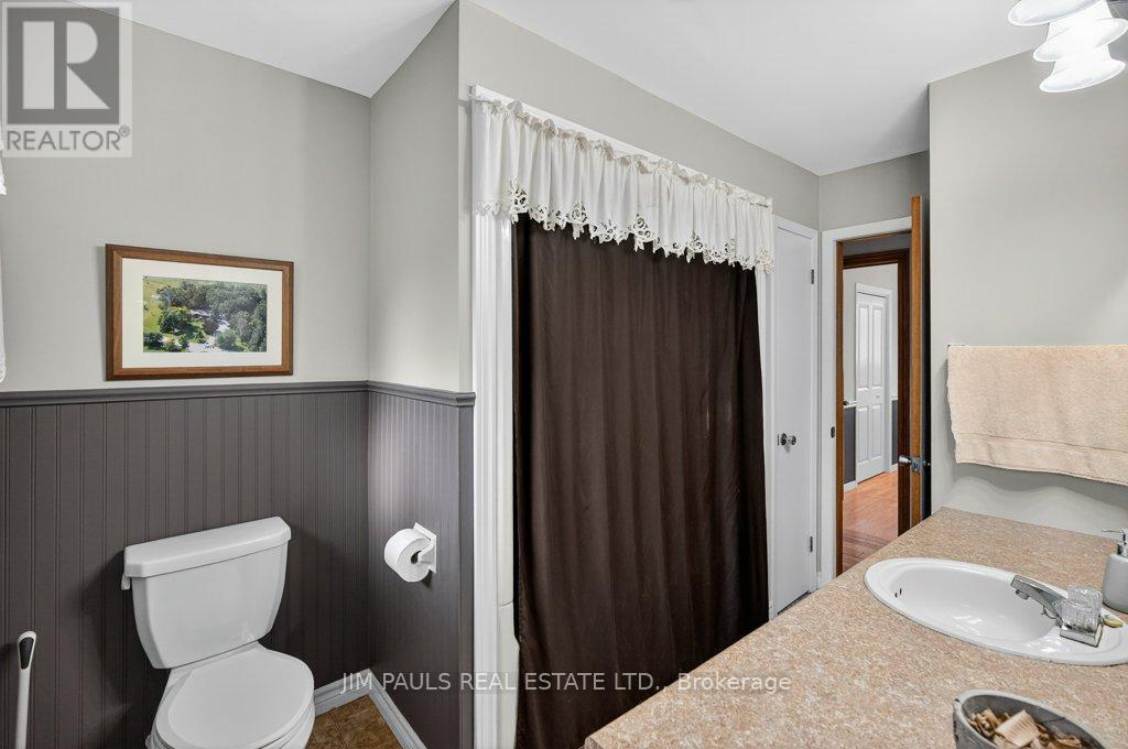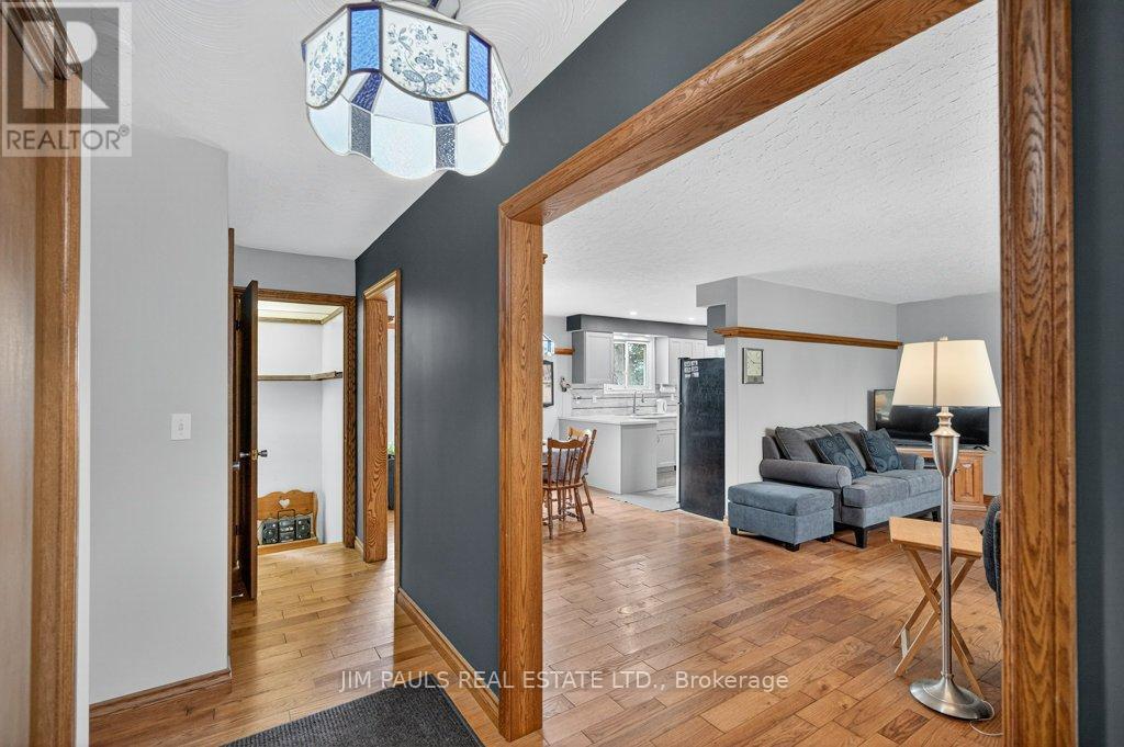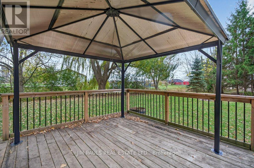 Welcome to this beautiful all-brick bungalow, perfectly nestled on just over an acre and surrounded by mature trees that provide exceptional privacy and a peaceful country feel. This property combines comfort, space, and natural beauty, with plenty of room to enjoy both inside and out.Step inside to discover a warm and welcoming home. The large living room features hardwood floors, a picture window that floods the space with natural light, and a cozy wood-burning fireplace with an updated insert. The adjacent dining area features patio doors that lead to a spacious two-tier deck, ideal for outdoor dining, entertaining, or simply enjoying the peaceful backyard views.The updated kitchen offers plenty of cupboard and counter space, a built-in desk area, and convenient inside access to the garage.There are three generously sized bedrooms, each with a closet, a 4-piece bathroom with ensuite privileges to the primary bedroom, and a second 3-piece bathroom for added convenience. The unfinished basement provides endless potential. With a walk-up to the garage and a separate entrance from the rear yard, it's an ideal setup for a future in-law suite, recreation area, or workshop. Foundation repair and exterior waterproofing completed in 2019. Outside, the possibilities are just as impressive. Enjoy a property large enough for a pool, gardens, or even a chicken coop. There's so much outdoor space to dream with and make your vision come to life. The peaceful surroundings and mature landscaping create a true sense of retreat.Over the years, the owner has thoughtfully maintained and updated the property, including the roof (2012), installation of gutter guards, a new asphalt driveway, updated pump and pressure tank, UV filtration system, wood fireplace insert, and a refreshed kitchen, among other improvements.If you've been looking for a home that offers space, privacy, and potential in a beautiful natural setting, this charming bungalow is one you won't want to miss. (41573074)