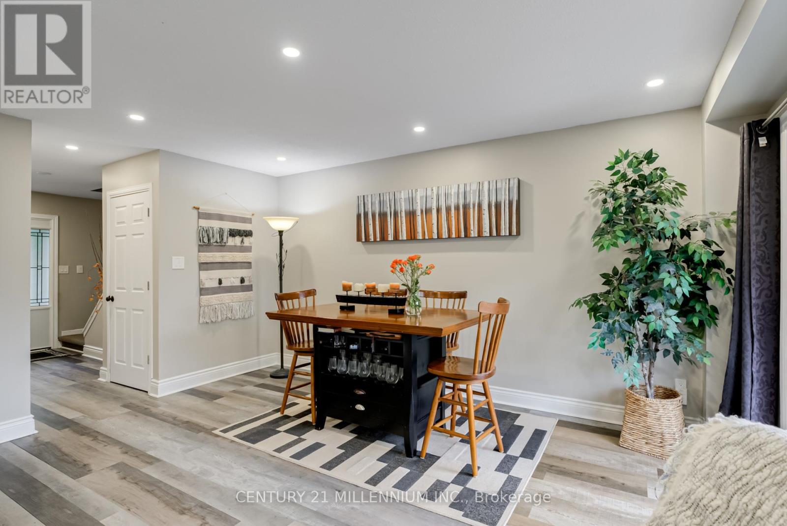 Welcome to 3 Orange Mill Court-a stylish and thoughtfully updated home in a well-kept, family-friendly complex. Unlike most units of its age, it offers rare perks like forced air gas heating, central A/C, and a main floor 2-piece powder room. A flexible front room adds versatility, perfect as a 4th bedroom, office, den, or formal living space. The kitchen features white cabinetry, quartz countertops, and stainless steel appliances, while luxury vinyl flooring and tall 5" baseboards elevate the main level. Enjoy open-concept living and dining with access to a fenced yard and gate to a shared green space. Upstairs offers 3 bright bedrooms and a renovated 3-piece bath with a glass shower. The finished basement includes dry-core subflooring, pot lights, built-ins, and a cozy rec room. Updates include all new windows (2020) and a new modern front door. The complex offers ample visitor parking and a private playground. Located close to parks, schools, and amenities, this is a rare opportunity! (41574905)