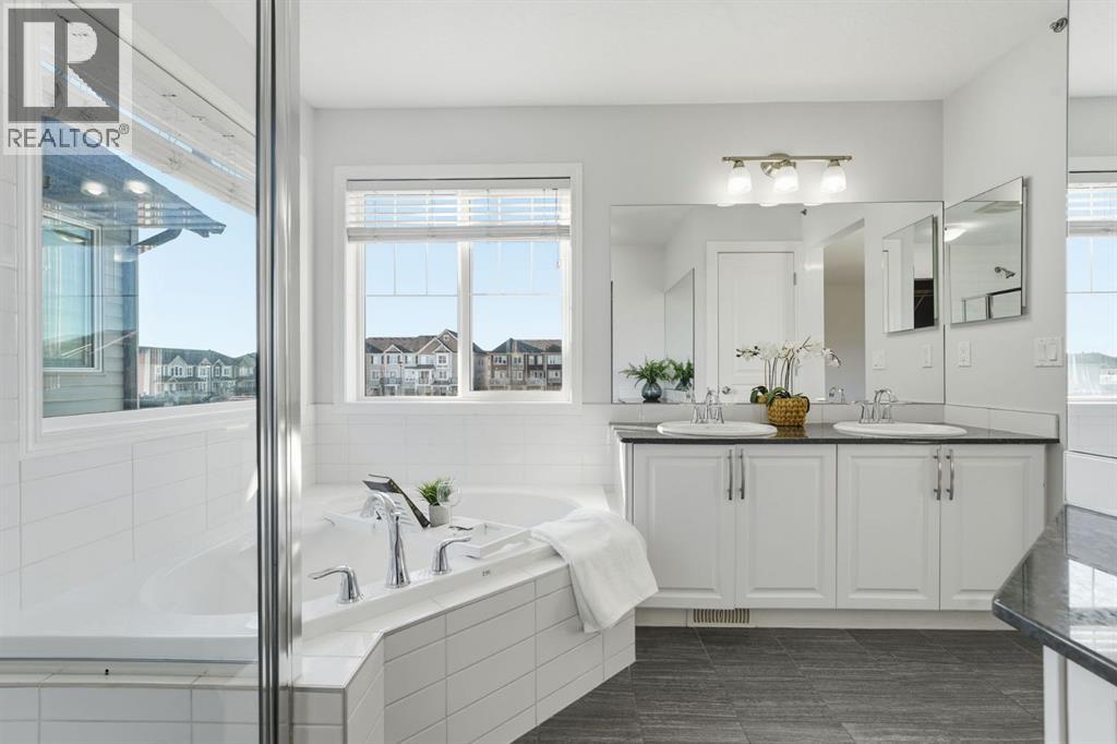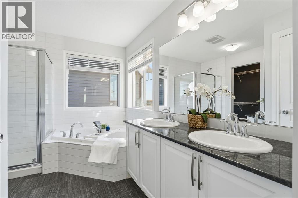 Welcome to your freshly updated home in the desirable community of Hillcrest, Airdrie! This beautiful two-storey detached home with a double front-attached garage has been thoughtfully refreshed from top to bottom. Step inside to a spacious foyer that opens into a bright, open-concept main floor featuring brand-new vinyl plank flooring, a generous living and dining area, and a modern kitchen with freshly painted cabinets, a walk-through pantry, and easy access to the deck and lower stone patio, perfect for outdoor entertaining. A convenient powder room completes the main level. Upstairs, you’ll find a large bonus room ideal for family movie nights, upper-floor laundry, and three comfortable bedrooms including a king-sized primary retreat with a luxurious 5-piece ensuite featuring a soaker tub, separate shower, dual sinks, water closet and a dedicated vanity with mirror, perfect for getting ready in style. A spacious walk-in closet completes this relaxing space. The home also features brand-new carpet and fresh paint throughout, offering a truly move-in-ready feel. The unspoiled lower level offers plenty of room for your future development ideas and includes a rough-in for a bathroom, giving you the perfect opportunity to create additional living space tailored to your needs. Located in sought-after Hillcrest, this home is close to schools, parks, playgrounds, walking paths, and shopping at Coopers Town Promenade. Commuting is a breeze with easy access to 8th Street and Highway 2, while nearby amenities, dining, and recreation make this the perfect spot for growing families and busy professionals alike. Fresh, modern, and full of natural light, this Hillcrest gem is ready to welcome you home! (31334461)