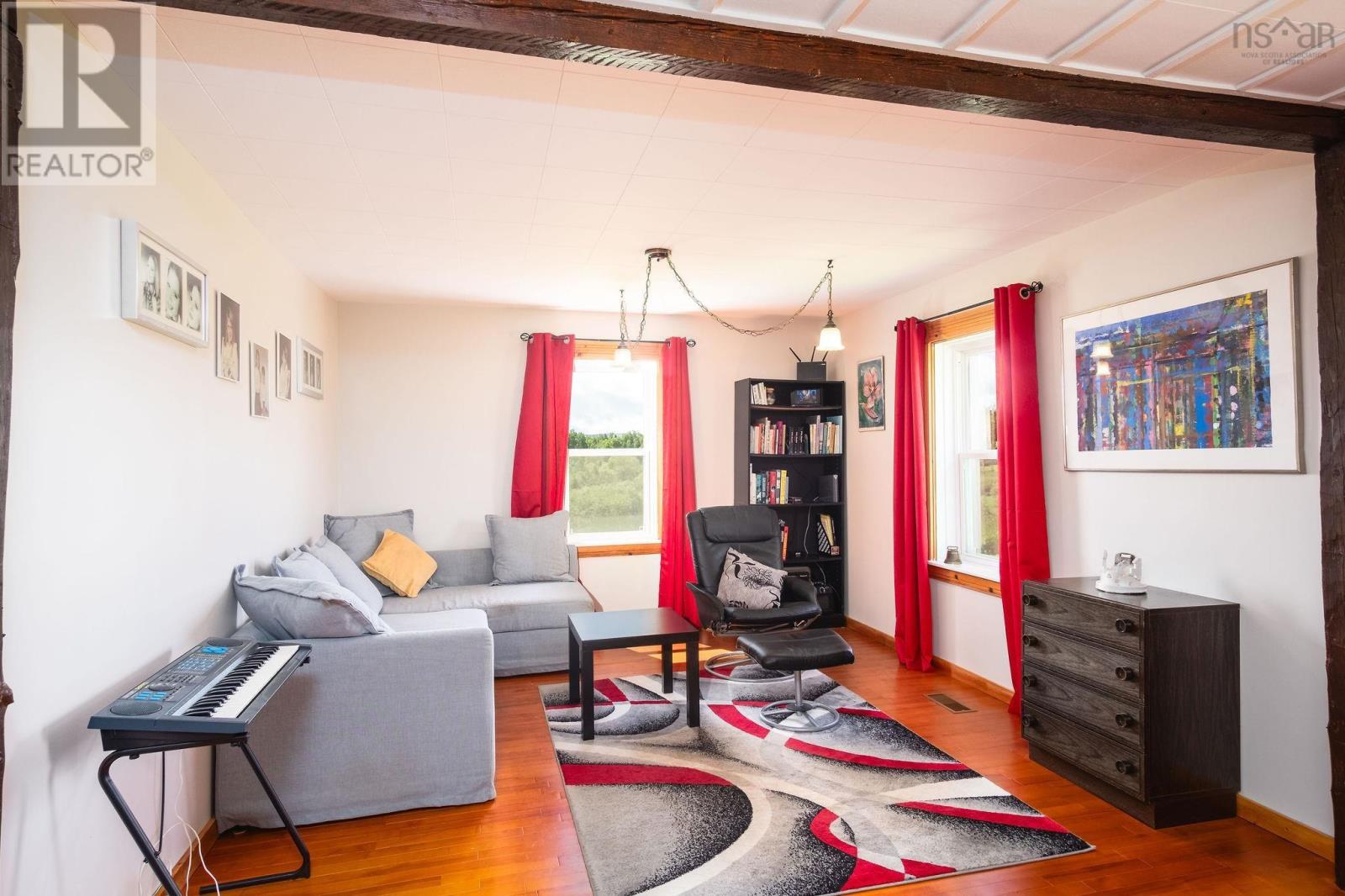 A traditional Cape Breton Farm! This exceptional property offers a unique opportunity for those seeking a mix of natural beauty, farmland, and potential development. Spanning over 98 acres, this working farm provides approximately 2,891 feet of waterfrontage on the tranquil Bras d'Or Lake, making it an attractive location for both residential and agricultural pursuits. A well-maintained four-bedroom, two-bathroom older farmhouse offers comfort and character with spacious living areas, including a large eat-in kitchen and cozy living room. Positioned atop a scenic crest, it boasts fantastic views over Seal Cove, making it an ideal setting for relaxation or entertaining guests. The property is equipped with ample outbuildings to support farm operations: A three-car detached garage/machinery building A large barn suitable for livestock or storage An older mobile mini home currently used as a workshop (can be restored and repurposed). The property features a mix of hay fields and a mixed forest with some mature pine trees, offering both agricultural potential and aesthetic appeal. The back lot includes a brook and several walking trailsm providing a peaceful and scenic environment to explore the natural surroundings. Currently a working farm, the property coud be repurposed for cattle, sheep, or general agricultural use. Its fertile grounds and varied landscape make it an ideal location for farming or a solar farm project, given the property's geographic advantages. Located just 5 minutes from Orangedale, the property offers easy access to local amenities while maintaining a secluded, peaceful setting in the countryside. This property is perfect for someone seeking a farm with a view, a space for outdoor activities, or even an environmentally sustainable project like a solar farm. Whether you're looking for a tranquil home, a working farm, or a mix of both, this Cape Breton gem offers plenty of possibilities. (231594441)