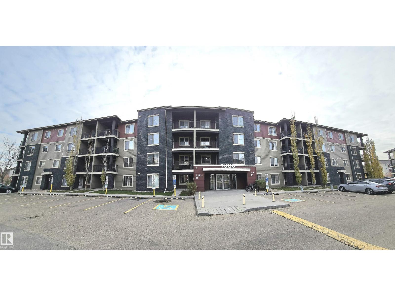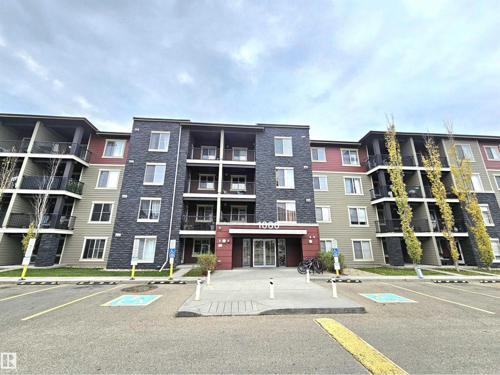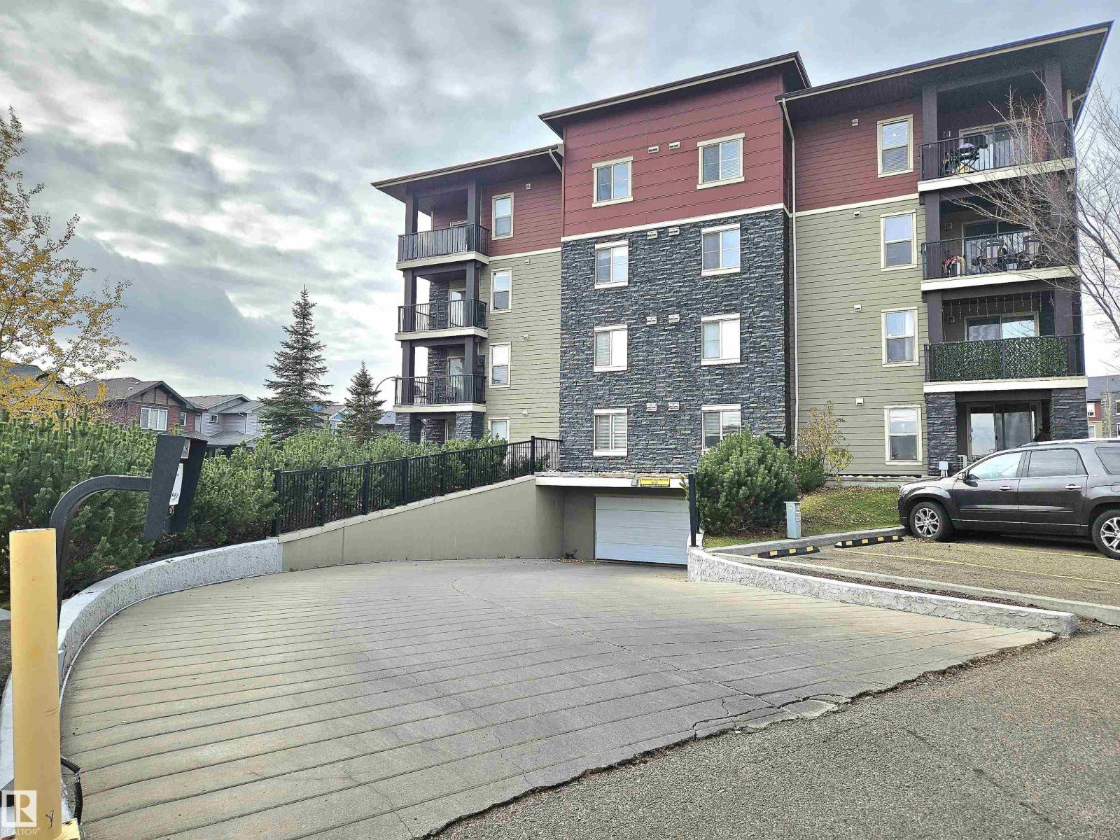 Beautiful and spacious move-in ready with IMMEDIATE POSSESSION 847 sq. ft. 2 bedrooms plus DEN, 2 baths, and 2 titled parking stalls (one underground and one surface parking) top floor condo unit in Elements At McConachie. This lovely unit has contemporary color tones newly painted 5 years ago. Large and bright living room has big window and access to the Southeast facing balcony. Beautiful kitchen has granite countertops, extended breakfast bar, tiled backsplash, stainless steel appliances, and laminate flooring. Spacious dining area. Good size bedrooms. Primary bedroom has walk-through closet and 3 pcs. ensuite. The second bedroom has adjacent 4 pcs. main bath. A good size den offers much versatility. Convenient insuite laundry with newer washer. Two titled parking stalls. The underground parking stall is conveniently located just steps to the elevator. Close to all amenities and quick access to Anthony Henday. (33531897)