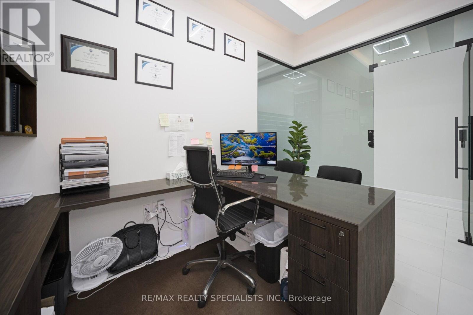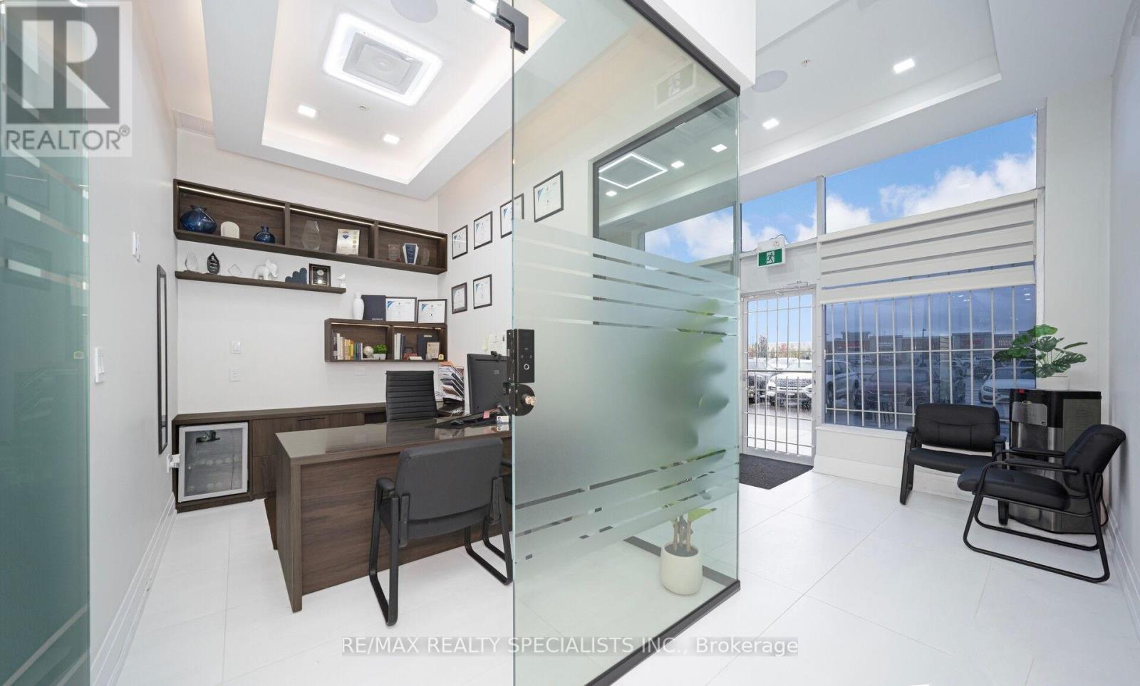 Exceptional opportunity to lease a fully furnished, New, move-in-ready retail/office space in one of the city's most sought-after high-traffic plazas. Offering premium exposure, steady walk-in traffic, and excellent accessibility, this unit is ideally positioned among major banks, Home Depot, restaurants, fitness centers, and transit, Retail business-such as a boutique, phone repair shop, beauty salon, nail bar, or Professional office for healthcare services, law, accounting, real estate, immigration consulting, travel services, or insurance,. Designed with modern finishes throughout, the space features a welcoming reception area with an elegant accent feature wall, Five (5) private offices,reception area, a glass-enclosed boardroom, stylish flooring, glass & wall partitions. A well-appointed kitchenette with stainless steel appliances and a private washroom provide added convenience for staff and clients. The unit comes fully furnished with desks, ergonomic chairs, front desk, boardroom table and chairs, and kitchenette appliances-offering a seamless, professional turn-key setup. Perfect for a wide range of professional and service-based businesses including legal, accounting, real estate, mortgage, insurance, healthcare/wellness, immigration, travel services, boutique retail, and more. Additional $140,000 applies for the existing high-quality custom interior build-out. A rare chance to secure a premium, ready-to-operate space in a top-tier commercial location. (41577731)