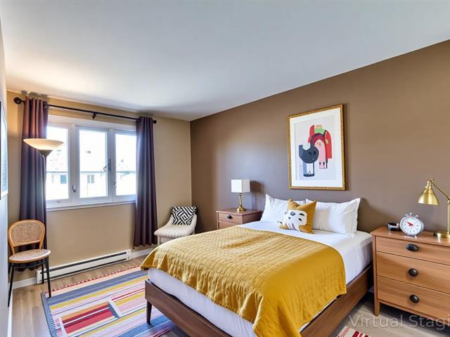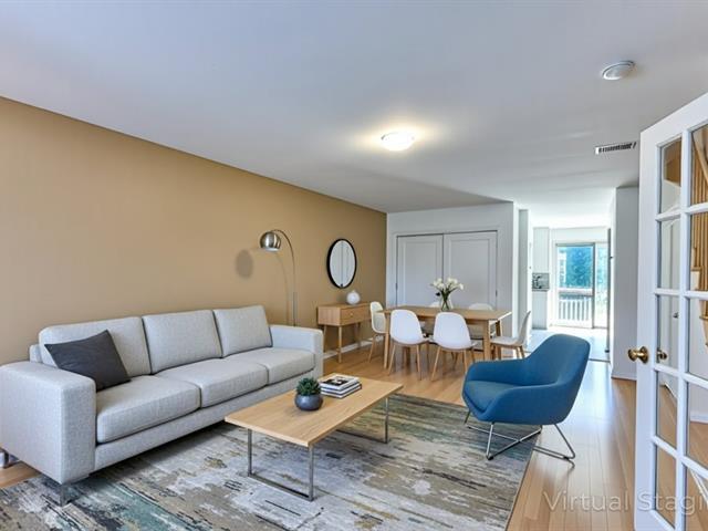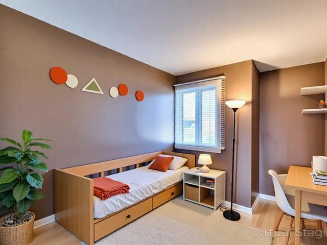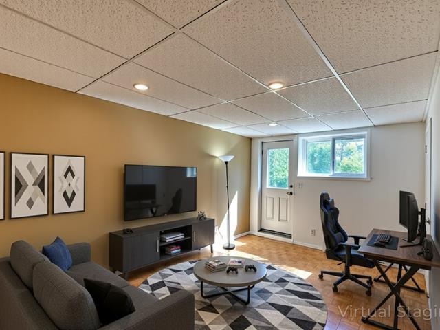 Discover this cozy townhouse in Brossard, located 1 min from Costco and just behind Parc Radisson, offering a breathtaking view of the park from the backyard. Designed like a townhouse featuring open-concept Living room and Dining room, renovated kitchen with quartz countertop and dinette opens up to a backyard, 3 bedrooms at 2nd floor, 2 bathrooms, and finished basement with exit to the back yard! Very bright and spacious house close to Marie Laurier Acadmey, schools, transportation, and much more. There is no monthly fee, but a single payment around 1235$ in June each year to cover insurance and condo registration. (49528665)