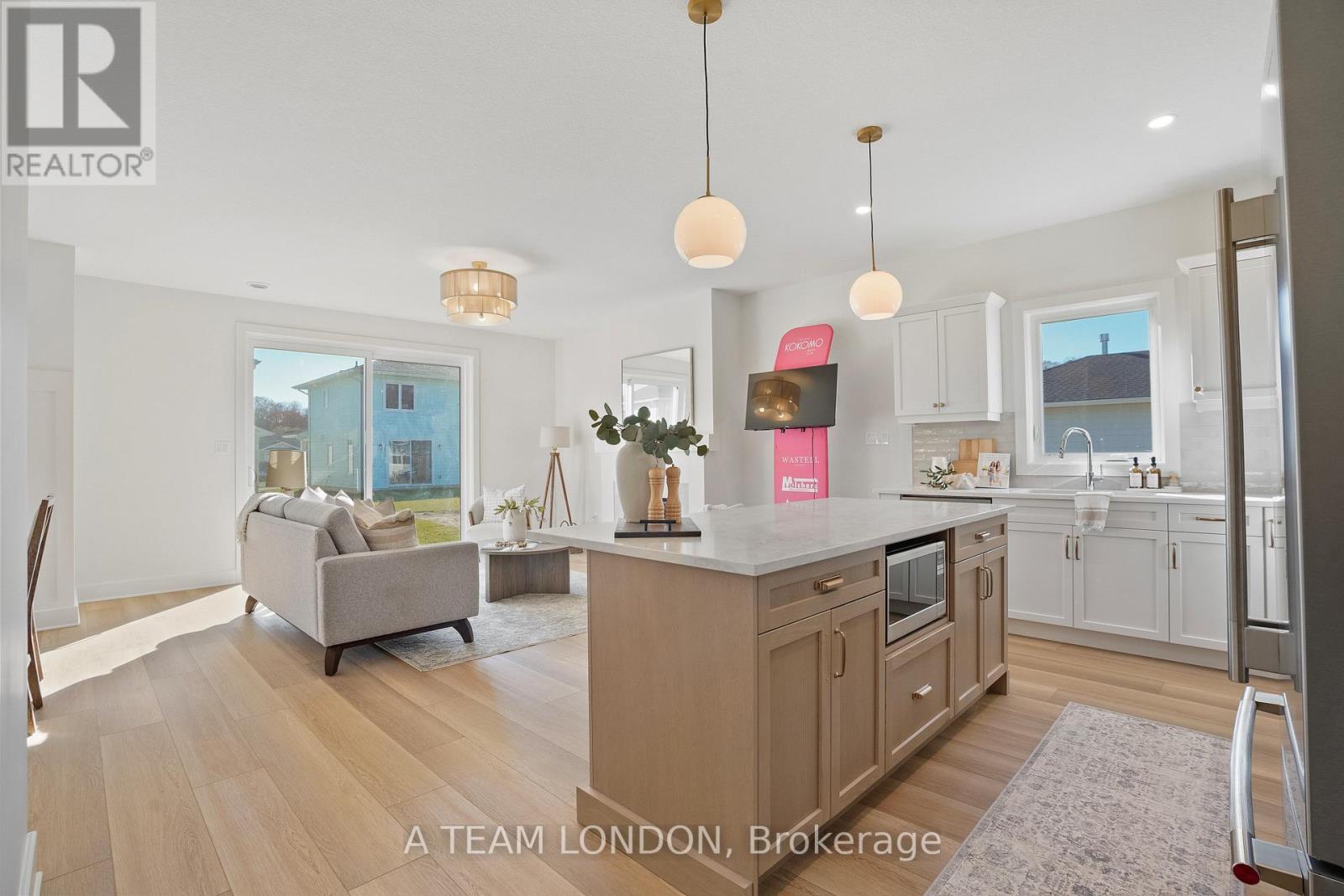 A brand new build with immediate possession available! Welcome to The Dock Model, where upscale living meets effortless style. This 1,580 sq. ft. bungalow is designed for those who love to be part of the action, whether hosting friends or catching the game from the kitchen island. The open-concept layout connects the kitchen, living, and dining areas seamlessly, creating the perfect space for entertaining. Luxury vinyl plank flooring flows throughout the main living areas, while the kitchen showcases quartz countertops and an inviting island. The primary bedroom features a walk-in closet and a spa-inspired ensuite. A second bedroom, full bath, and versatile bonus room-ideal for a home office or den-complete this stylish and functional layout. A large two car garage is a great place to store your paddle board or beach gear! Homeowners are members of a private Beach Club, which includes a large pool, fitness centre, yoga studio and an owner's lounge. The community also offers pickleball courts, playground, and only a 5-minute walk to the beach! That means Lake Erie, sand, surf and relaxation are always at your fingertips. (41581767)