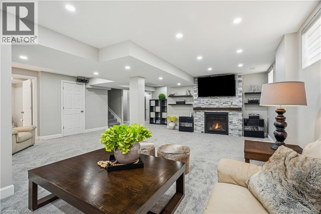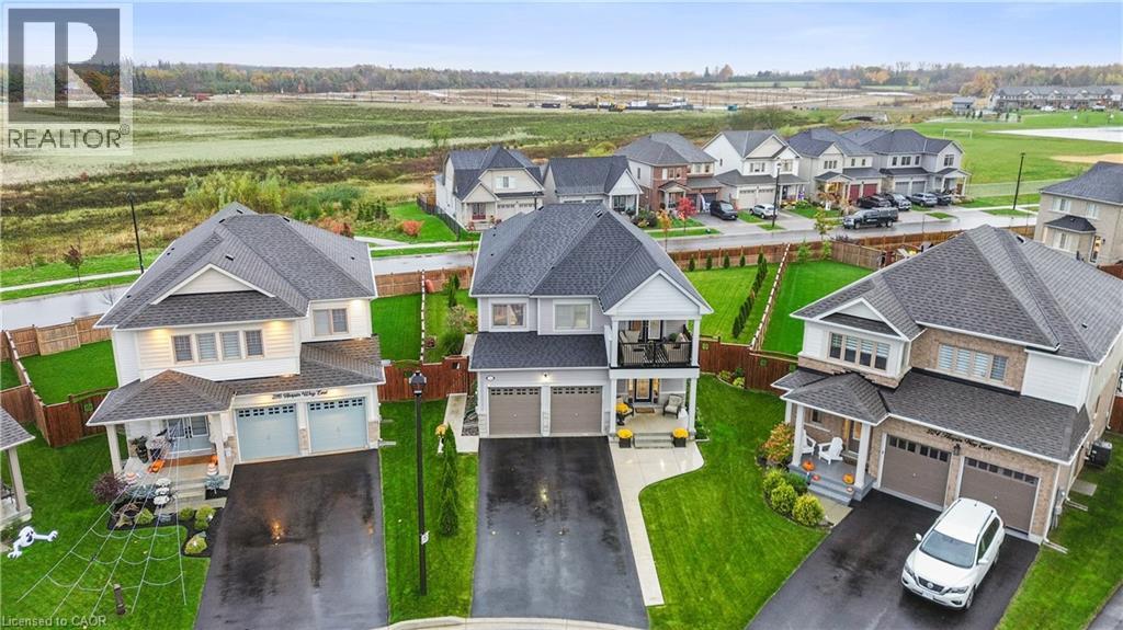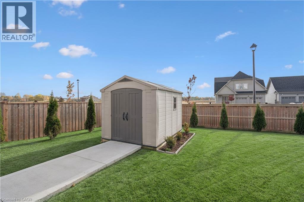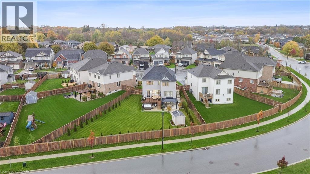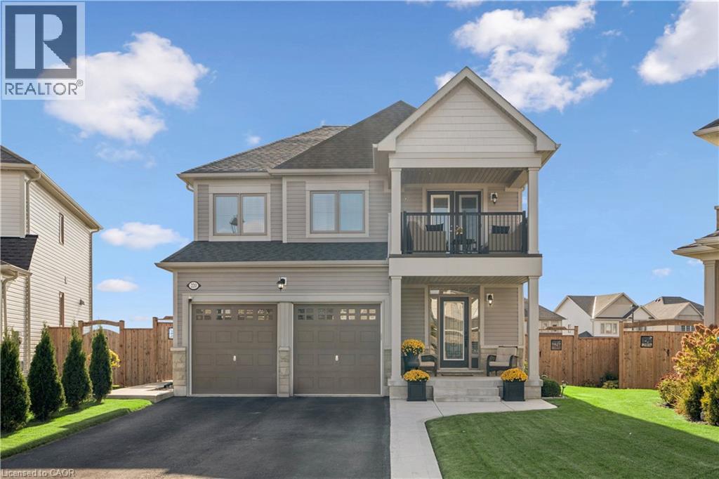 4 BEDROOMS! 4 BATHROOMS! PIE-SHAPED LOT! FINISHED BASEMENT! Welcome to 220 Harpin Way E — a beautifully appointed 4-bed, 4-bath detached home on a premium pie-shaped lot in the sought-after Storybrook subdivision of Fergus. Built in 2021 and designed with family comfort in mind, this home blends style and function across three spacious levels. Inside, 9-ft ceilings, wide-plank flooring, and California shutters set the tone. The gourmet kitchen features a large quartz island, gas stove, pot-filler, extended cabinetry, and walkout to a deck with gas BBQ hookup — perfect for entertaining. The living room includes a cozy gas fireplace and custom built-ins, complemented by a formal dining room and practical mudroom with inside garage entry. Upstairs, the luxurious primary suite boasts a walk-in closet and spa-like ensuite with a soaker tub and glass shower. Three additional spacious bedrooms, a 4-pc bath, and laundry room round out the second floor — including one room with its own private balcony, ideal for a home office. The finished basement adds a rec room with fireplace, bonus room for an office or gym, plus storage. Mechanical systems are near-new, offering peace of mind. Outside, enjoy a fully fenced, landscaped yard with room to roam — ideal for kids, pets, or future pool plans. The double garage and 4-car driveway make daily life easy. Located on a quiet cul-de-sac, you're close to parks, trails, the Grand River, brand-new Grand River Public School, and Groves Hospital. It’s everything a growing family needs — in one move-in ready home. (69855940)