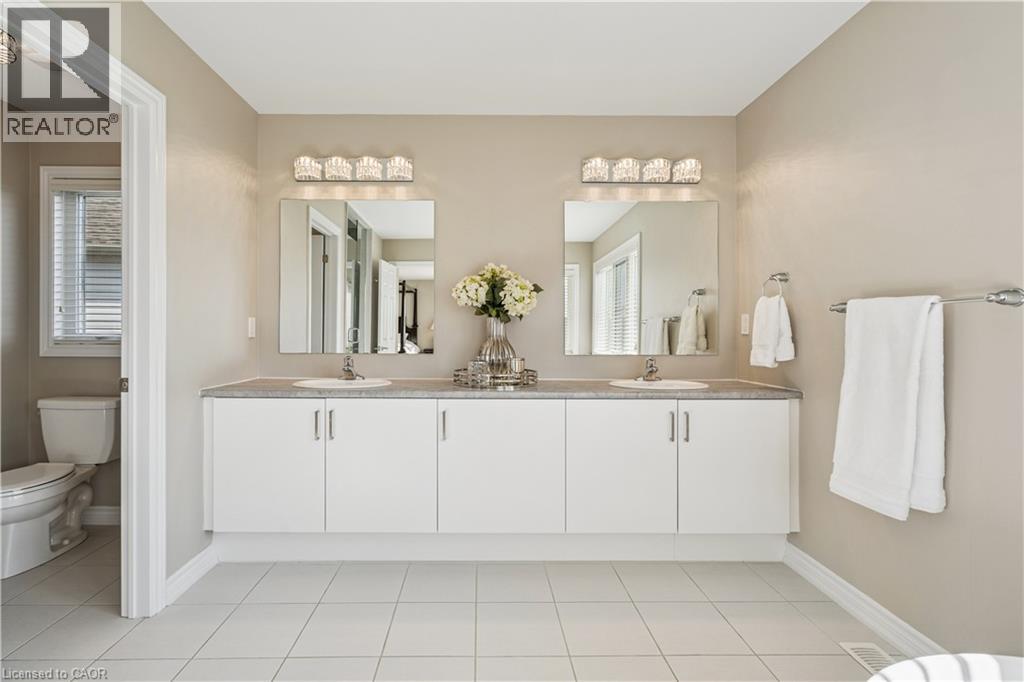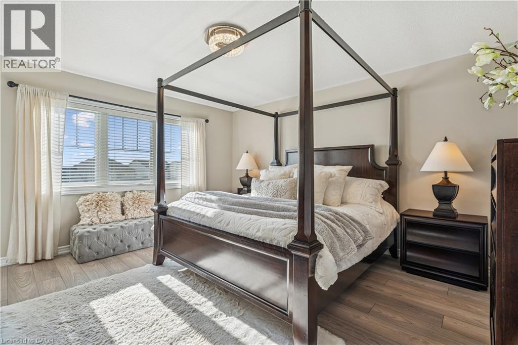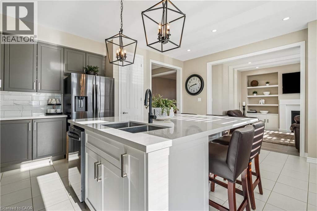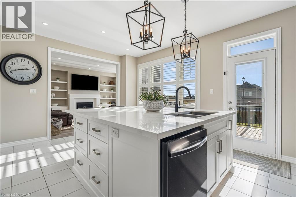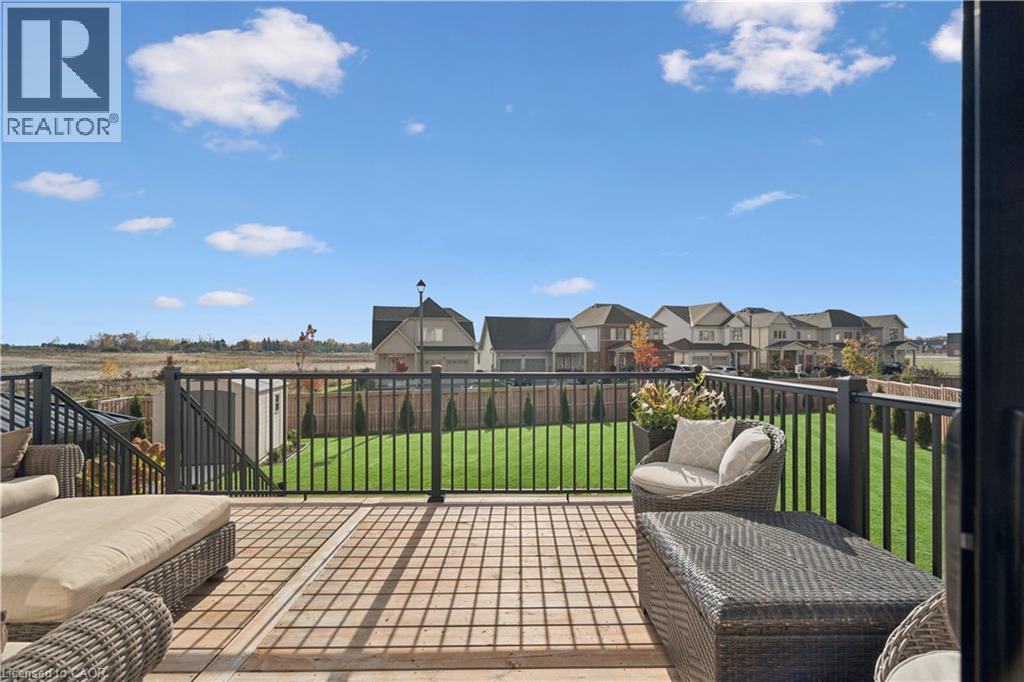 4 BEDROOMS! 4 BATHROOMS! PIE-SHAPED LOT! FINISHED BASEMENT! Welcome to 220 Harpin Way E — a beautifully appointed 4-bed, 4-bath detached home on a premium pie-shaped lot in the sought-after Storybrook subdivision of Fergus. Built in 2021 and designed with family comfort in mind, this home blends style and function across three spacious levels. Inside, 9-ft ceilings, wide-plank flooring, and California shutters set the tone. The gourmet kitchen features a large quartz island, gas stove, pot-filler, extended cabinetry, and walkout to a deck with gas BBQ hookup — perfect for entertaining. The living room includes a cozy gas fireplace and custom built-ins, complemented by a formal dining room and practical mudroom with inside garage entry. Upstairs, the luxurious primary suite boasts a walk-in closet and spa-like ensuite with a soaker tub and glass shower. Three additional spacious bedrooms, a 4-pc bath, and laundry room round out the second floor — including one room with its own private balcony, ideal for a home office. The finished basement adds a rec room with fireplace, bonus room for an office or gym, plus storage. Mechanical systems are near-new, offering peace of mind. Outside, enjoy a fully fenced, landscaped yard with room to roam — ideal for kids, pets, or future pool plans. The double garage and 4-car driveway make daily life easy. Located on a quiet cul-de-sac, you're close to parks, trails, the Grand River, brand-new Grand River Public School, and Groves Hospital. It’s everything a growing family needs — in one move-in ready home. (69855940)