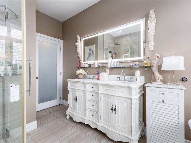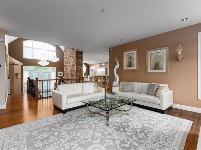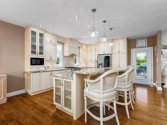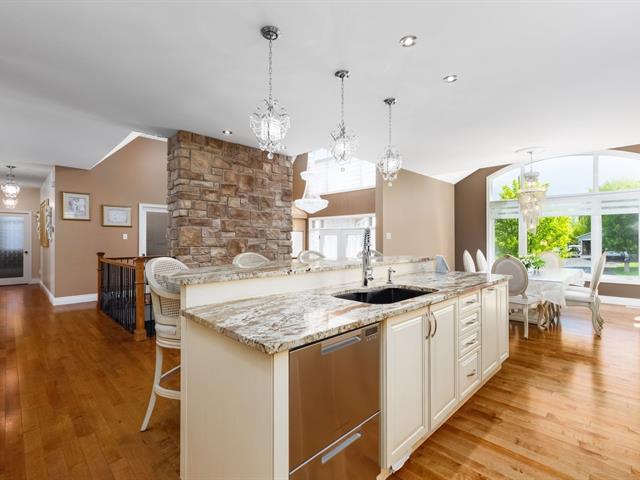 Magnificent bungalow nestled at the end of a private cul-de-sac, in a peaceful and sought-after neighborhood. With nearly 2,000 sq. ft. of living space, this property offers 4 bedrooms, 3 bathrooms, a chef's kitchen with granite countertops and high-end appliances, as well as a warm living room with a fireplace. Fully finished basement with heated floors. Enjoy a private lot of over 11,000 sq. ft., a heated saltwater inground pool, and a covered veranda with electric blinds. Large double garage, no rear neighbors, only 5 minutes from Highway 50 and close to Ottawa. (48317370)