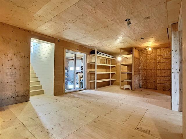 Flat site, Paved driveway, Wood cupboard, Melamine cupboard, PVC window, Crank windows