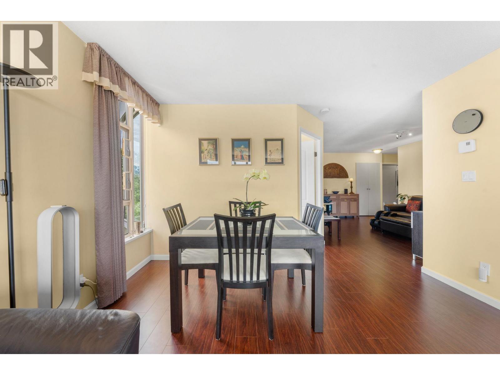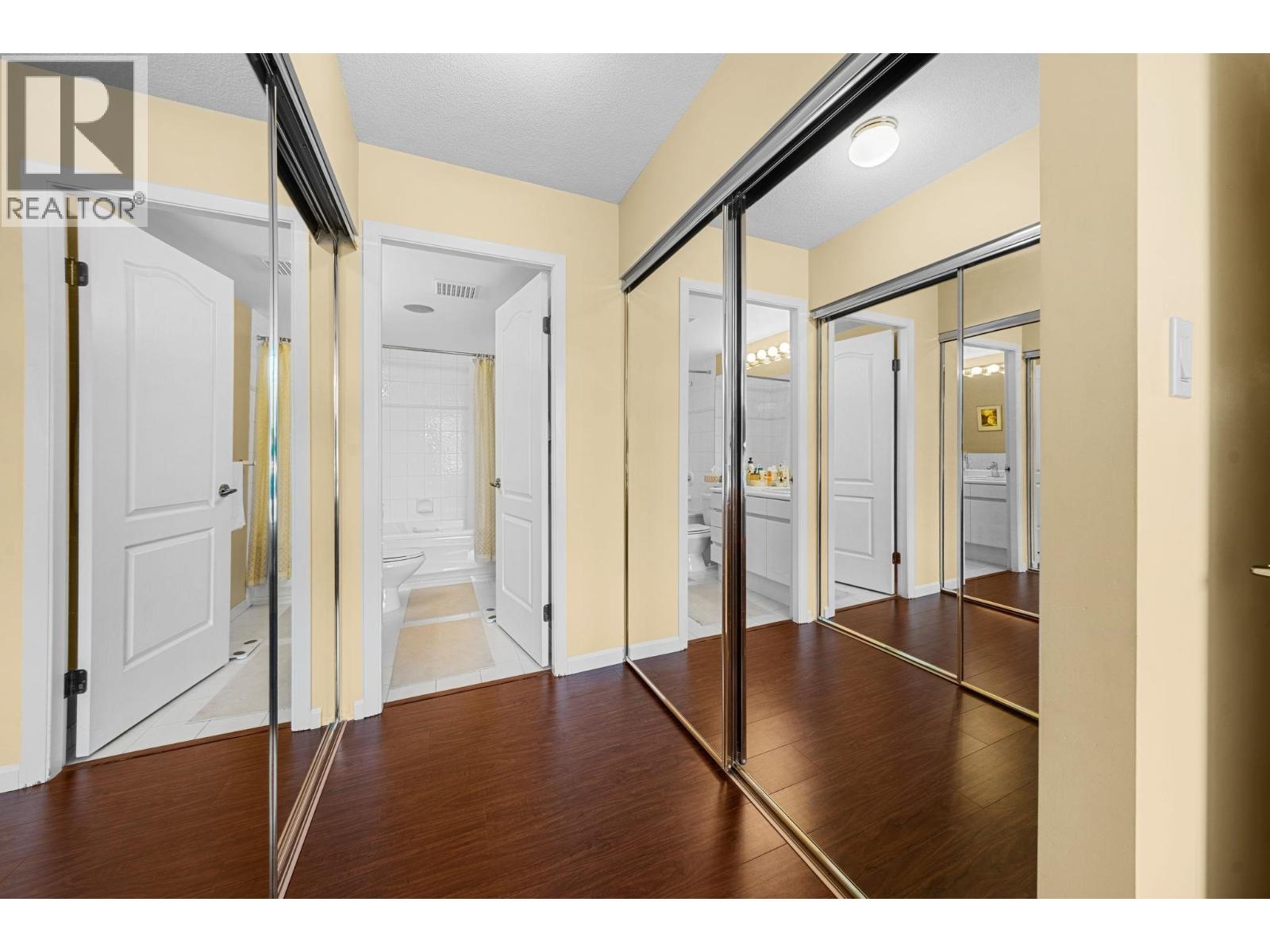 CARLTON AT THE CLUB - Bright, spacious, and West-facing, this concrete condo offers 2 bedrooms, 2 full bathrooms, and stunning city, water, and mountain views. The open-concept layout features a large kitchen flowing into the dining and living areas, with updated flooring and fresh paint throughout. The primary bedroom boasts an ensuite and generous closet space, while the second bedroom is perfect for guests or a home office. A perfect deck to enjoy the sunsets! Enjoy resort-style amenities: indoor pool, hot tub, sauna, gym, theatre, billiards, card room, and guest suite. Ideally located next to Bridgman Park and just steps to Park & Tilford shops and services. 1 parking and 1 storage. Sorry, no pets. This home wont last long come see it today! (32136575)