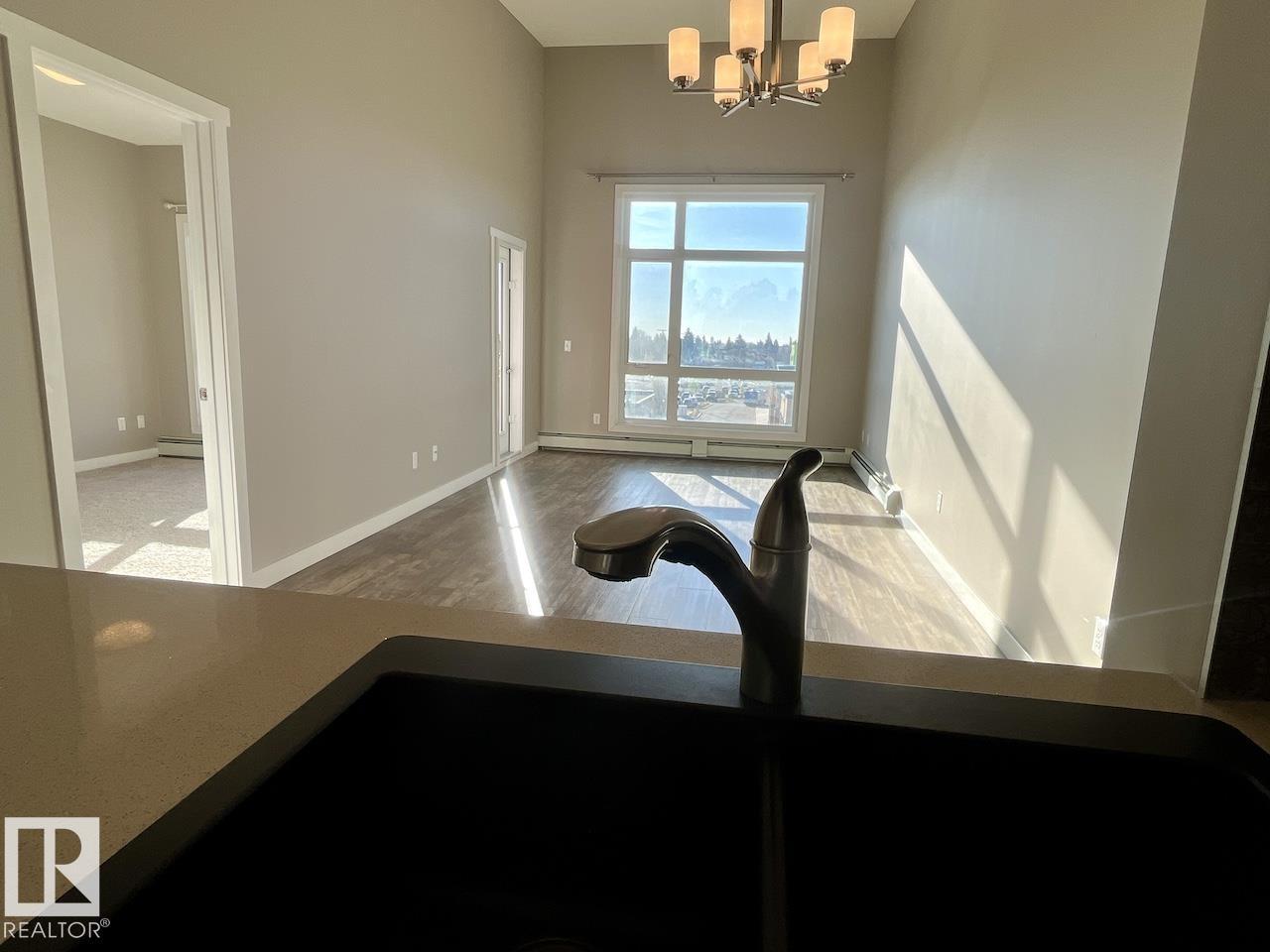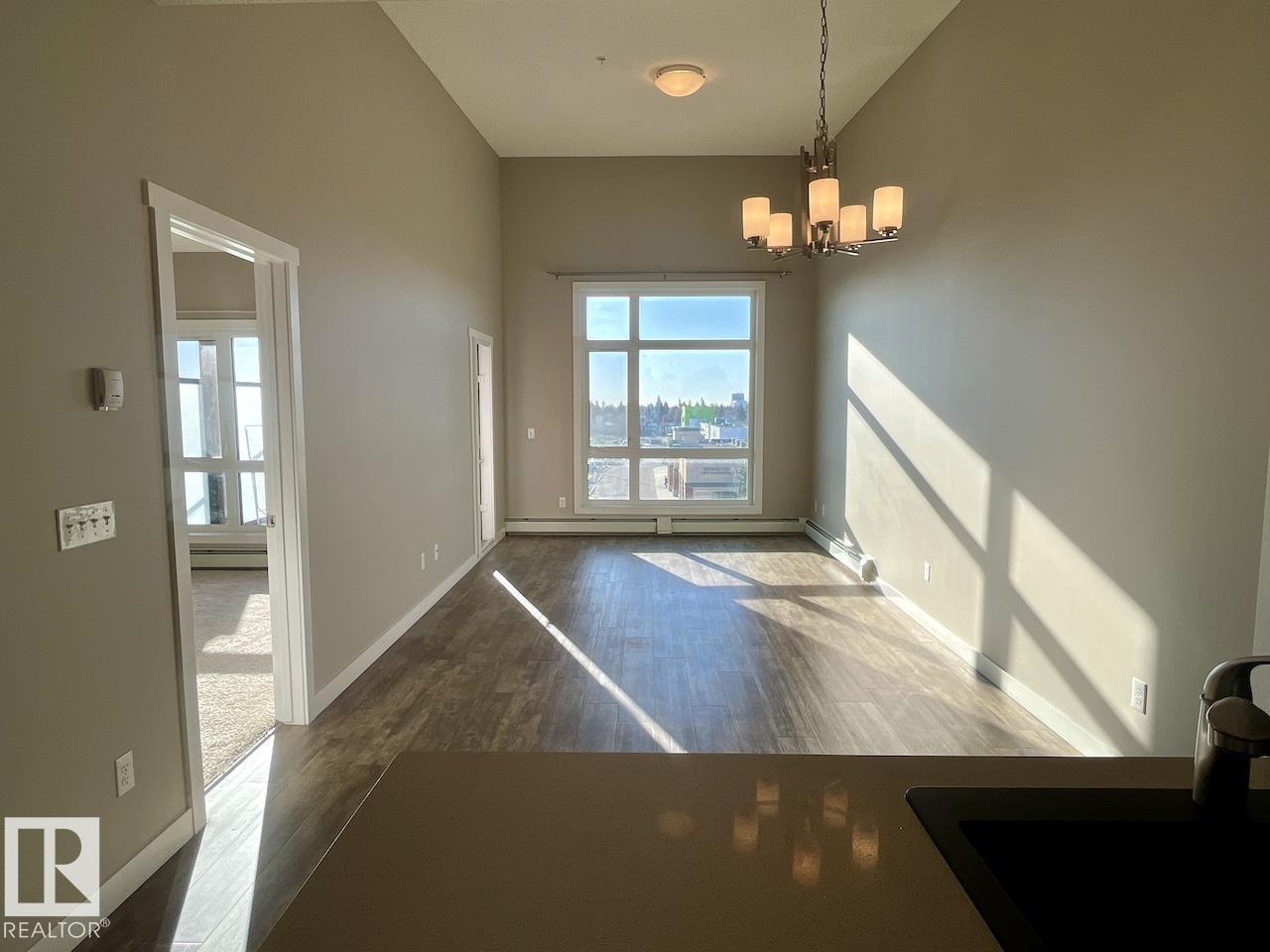 Welcome to Aloft Skyview, the hottest addition to Northwest Edmonton! This stunning penthouse suite offers 735 sqft of bright, open-concept, luxurious living with 2 bedrooms, 9’ ceilings, and a spectacular 12’ vaulted living room creating an airy, upscale feel. Enjoy an elegant kitchen with upgraded, ceiling-height cabinets, quartz countertops, tile backsplash, and LED lighting perfect for entertaining. The open layout flows to a 10x10 south-facing balcony with breathtaking city skyline views. Built in 2016 and lovingly maintained by its original owner, this home is spotless, quiet, and move-in ready. Includes in-suite laundry and titled underground heated parking. Located steps from 127 St & 137 Ave, you’re across from grocery stores, restaurants, and daily conveniences, with easy access to Yellowhead Trail, North Edmonton Common, St. Albert, and CFB Edmonton. Enjoy Aloft Skyview’s exclusive rooftop patio—a rare luxury in this area. Come see why this is Northwest Edmonton’s premier address! (33536353)