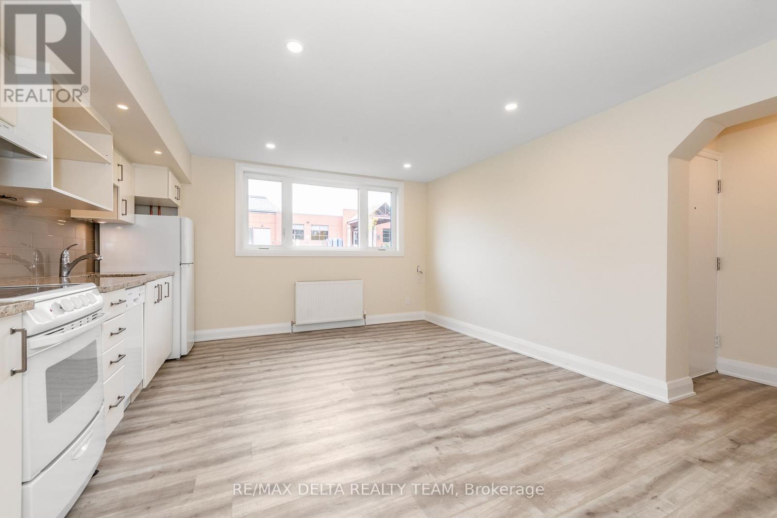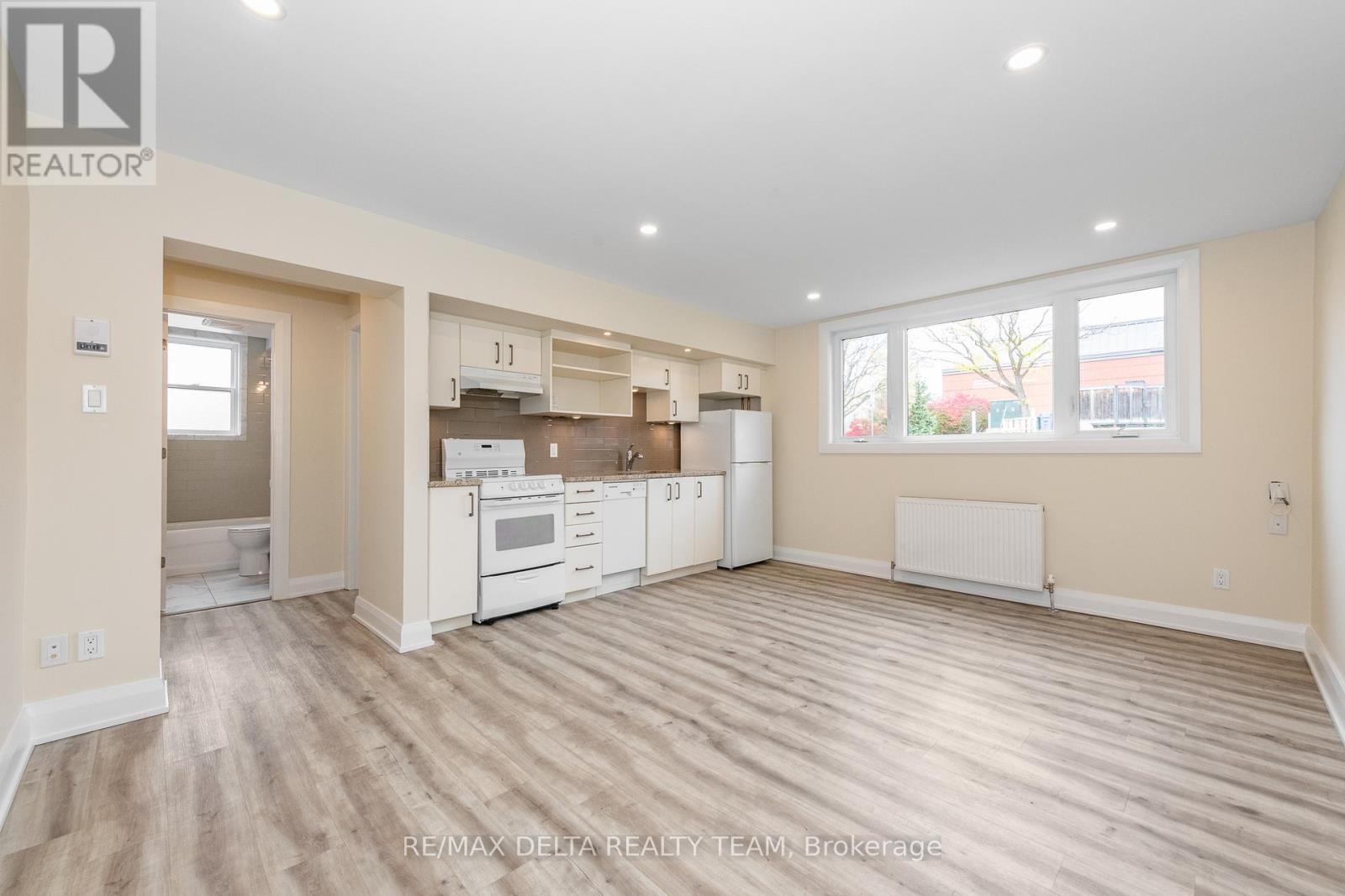 1 bedroom, 1 bathroom renovated lower level apartment with intercom system. Conveniently located in a peaceful residential setting in desirable Westboro across from the Kiwanis Park & Dovercourt Rec. Centre. Steps from transit, shopping, trendy restaurants, cafes, grocery stores and more. Open concept floorplan features pot lighting, fresh paint, laminate flooring - NO CARPET - and large windows allowing for ample natural light. Kitchen equipped with granite counter tops, subway tile backsplash & white cabinetry with under lighting. Eye catching 4pc bathroom with modern finishes. Impeccable location includes 1 outdoor parking space & a bicycle storage room. Laundry room is also in the lower level, is coin operated and includes a designated cupboard space for storage of your detergent. High efficiency radiators for heating, no A/C in unit. This is a NON SMOKING & NO PET BUILDING. (41585921)