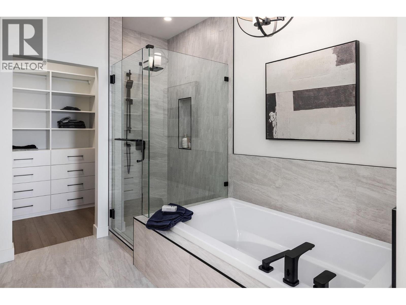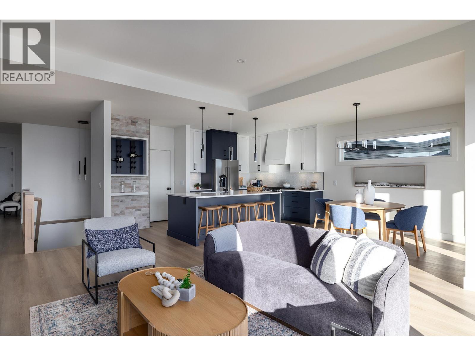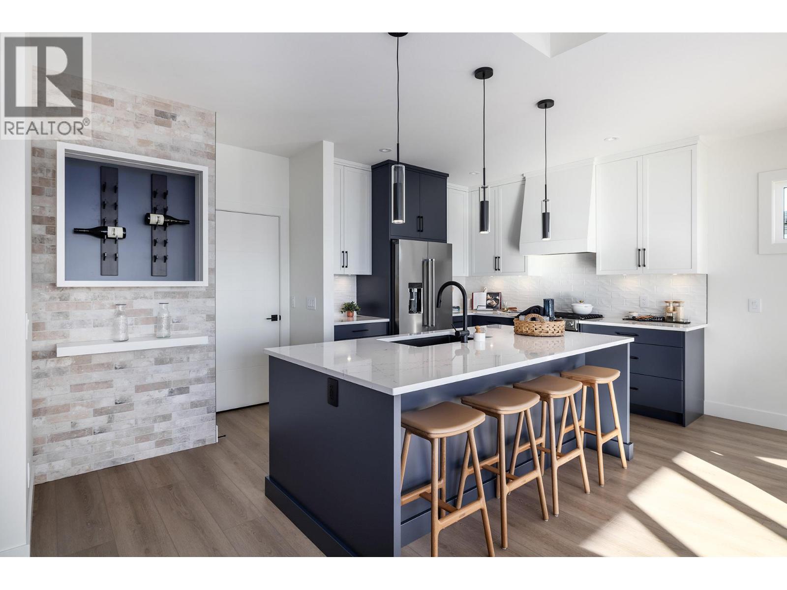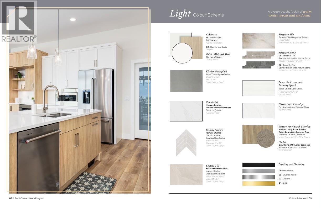Discover refined living in Shorerise, where dramatic views meet elevated design and nature’s beauty surrounds you. Perched high above Goat’s Peak, this community offers sweeping lake, valley, and mountain panoramas—a backdrop for a home where every detail is crafted for both daily comfort and striking entertaining. This exceptional new home in Shorerise features 3 bedrooms, including a luxurious primary suite with a spa-like ensuite and a generous walk-in closet. The oversized windows frame natural vistas while filling each room with light and serenity. An open-concept kitchen, dining, and living space with designer elements - think brushed nickel hardware, bold lighting, and sleek lines - for a modern, refined feel. The lower level expands your home with a large rec room and built-in wet bar - perfect for those entertaining nights, or a quiet night in. Let's not forget about the covered patio that creates a beautiful indoor/outdoor flow to enjoy West Kelowna's summer nights. Currently under construction, with completion scheduled for January 2026. ******Interior and exterior photos are of a like home/floorplan, but color scheme differs slightly. See photos of LIGHT scheme and floorplan in images for finish of this house. (39443059)