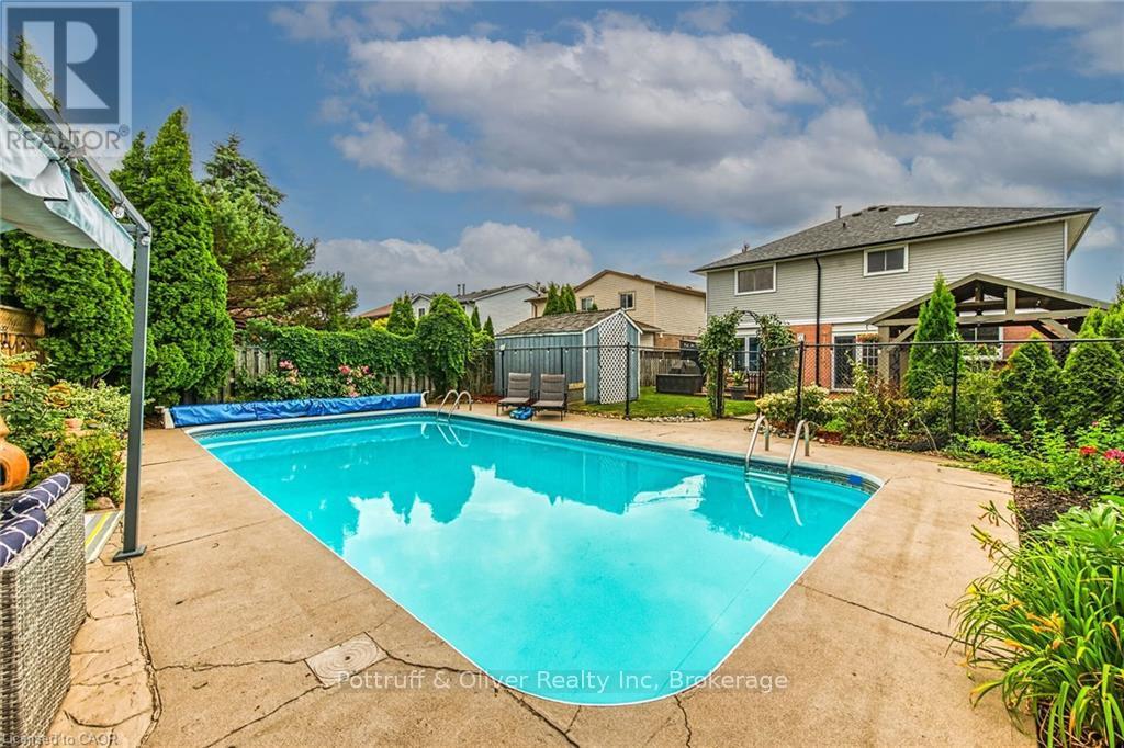 Beautifully maintained and stylishly updated family home steps to schools and parks. 45 Dublin Drive offers over 3000 sq ft of living space which is ideal for the growing or multi generational families. Spacious principle rooms through out. The grand 2 storey foyer and curved staircase welcomes you into this impressive home. Formal living room and dining room with gleaming hardwood floors. Recently remodelled eat in kitchen with stainless steel appliances, dark cabinets, quart counters, under cabinet lighting and mosaic backsplash. Patio door access from dinette to the rear deck and back yard oasis. Huge main floor family room with custom built-ins and gas fireplace. Main level laundry and convenient 2 pc bath. 2 car garage is a hobbyists dream with built-in shelving, and it's own heater. 2nd level primary bedroom retreat with decorative stone accent wall, big walk-in closet with custom organizers and a full ensuite bathroom with soaker tub. 2 more generously sized bedrooms and a 4 pc bath complete the second level. The finished basement offers unlimited opportunities. For those who like to entertain, there's a built-in bar area, a huge games room, perfect for a pool table, and an enormous recreation room watching movies. This lower level could easily accommodate a 2 bedroom in-law apartment. The bar area could be repurposed as a kitchen. There is an ideal space to add a bathroom off the main recreation room. Beat the heat with friends and family in the back yard of our dreams. Multiple deck and patio areas for dining and relaxing. Fenced in 32'x16' inground pool. One of the deepest lots in Wellington Chase measuring 142' deep. Recent exposed aggregate driveway. Most windows updated, new front door, furnace 2023, natural gas bbq hook up. Don't miss out - this is a must see! Room sizes approximate. (41594687)
