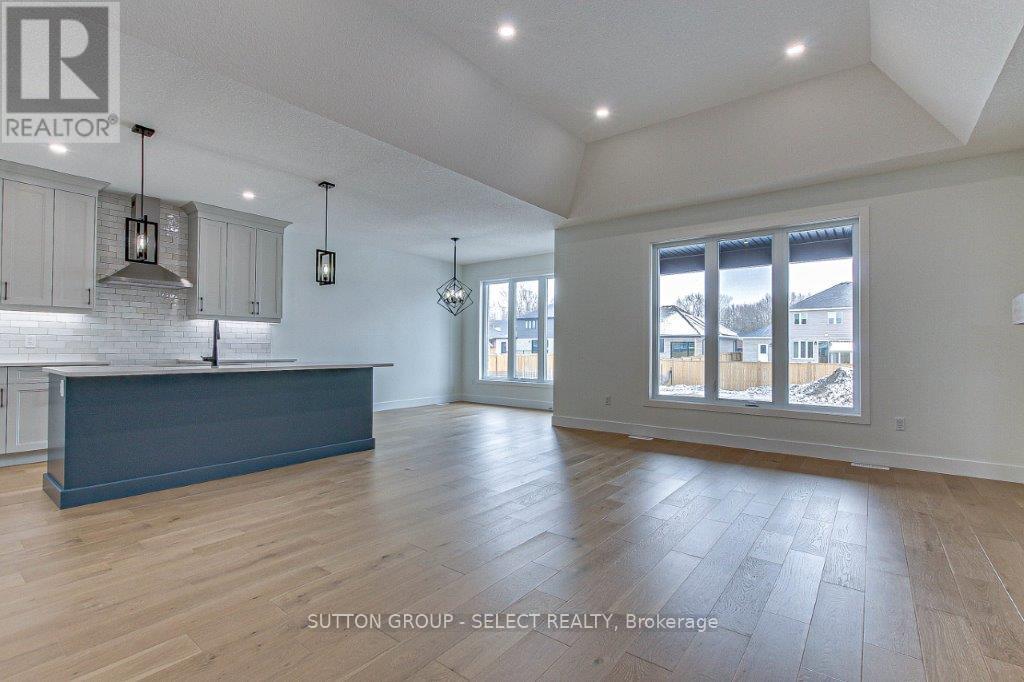 NEWLY PRICED MODEL HOME AVAILABLE FOR IMMEDIATE POSSESSION. Elegant one-floor living with open concept living/kitchen/dining area plus 2 bedrooms and 2 bathrooms. THAT'S NOT ALL... if you want or need to expand your living space, the lower level is pre-plumbed and wired for a full accessory apartment or future family room featuring 2 future bedrooms, future additional laundry,future kitchen/living room/washroom. This lower space also has its own exit to the garage for optimal utility. The main floor is finished with 9' ceilings, engineered hardwood, a wide and inviting foyer, views to the back yard right across the back of the house, a cozy great room with a shiplap backed fireplace and mantle, a kitchen to die for with walk-in pantry and gorgeous quartz counter tops including the extra large center island, and a dining area with walk-out to the covered veranda for your grilling pleasure. The master bedroom boasts a large walk-in closet, view of the back yard and a 4 piece ensuite with dual sinks and luxurious glass and tile walk-in shower. The double wide and deep drive along with 2 car garage finish off this lovely home offering you space for everyone in the family. The community is rich with spirit and has many offerings: community center with programs for every age group, a variety store with many grocery items and liquor and beer, a family restaurant, fast food & bakery outlet, splash pad, tennis courts, pharmacy, library, hardware store...check out our locally run hub for all the community news. ilovethrondale.ca. Call your agent to arrange a private showing or check to see with an open house is coming up. NOTE: IF YOU ARRANGE A SHOWING WITH THE LISTING AGENT THEN OFFER THROUGH ANOTHER AGENT, THE BUYER AGENT'S COMMISSION WILL BE REDUCED. also note that taxes have not yet been assessed. (41595475)
