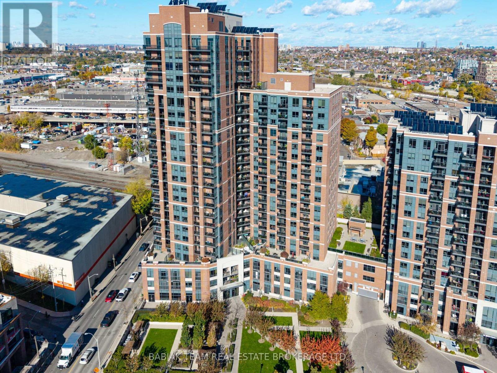 Welcome to loft-inspired living in the Heintzman! This south-east facing corner unit offers incredible unobstructed views of the CN tower, the lake and the Junction skyline.The stunning 2 bedroom + den features an excellent functional split plan layout of almost 800 sq ft. Tastefully updated, the kitchen features all stainless steel appliances including a Fisher Paykel fridge and brand new LG ThinQ microwave. Engineered hardwood floors throughout the bedrooms, living room and dining room create seamless flow and highlight the open concept of the unit. Each bedroom boasts a unique view of the city and both come with a built-in closet. The primary bedroom has its own private south- facing patio - a dream spot to wake up to and enjoy your morning coffee. The den offers a versatile space - ideal for a home office, cozy reading nook, creative studio or music room. Off the den, you will find a brand new washer dryer combo (LG ThinQ). Stroll to popular Junction independent shops, restaurants, organic grocery stores, The Junction Farmer's Market, Vine Avenue Playground, and excellent neighbourhood schools. Everything you need is close at hand! With a walk-score of 97, TTC steps away, & a short walk to the UP express/GO station, getting out and about has never been easier. Exceptional amenities include 24 hr concierge, BBQ terrace, gym, party room, library, pet wash station, visitor parking, bike storage and EV charging stations. Some photos virtually staged. (41596259)