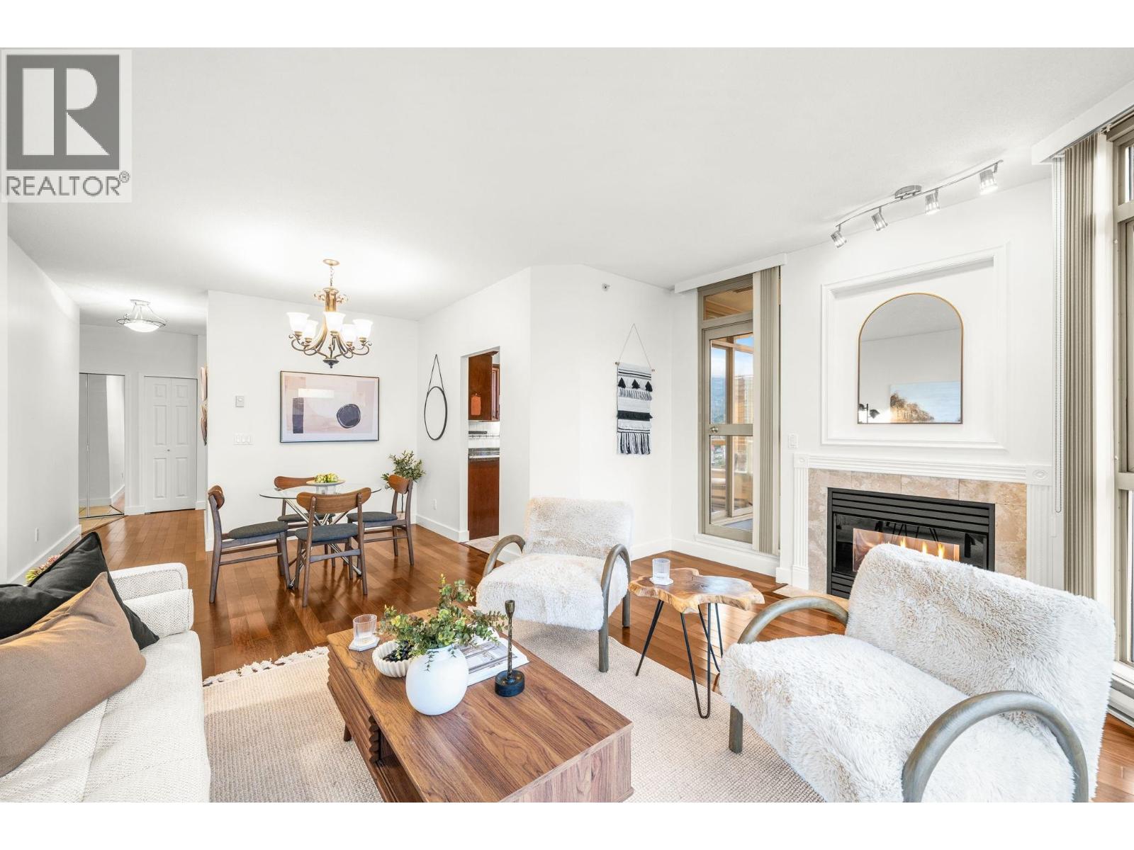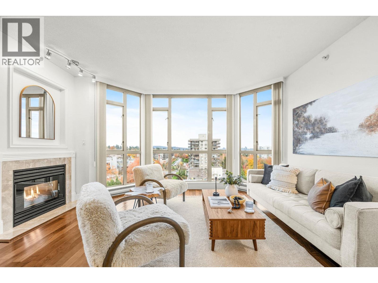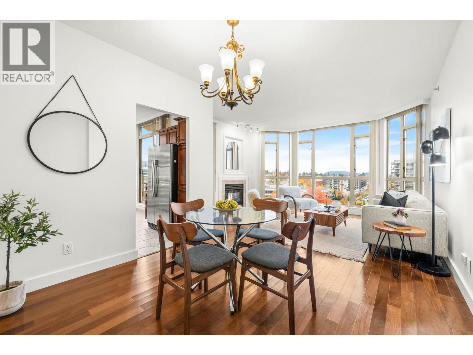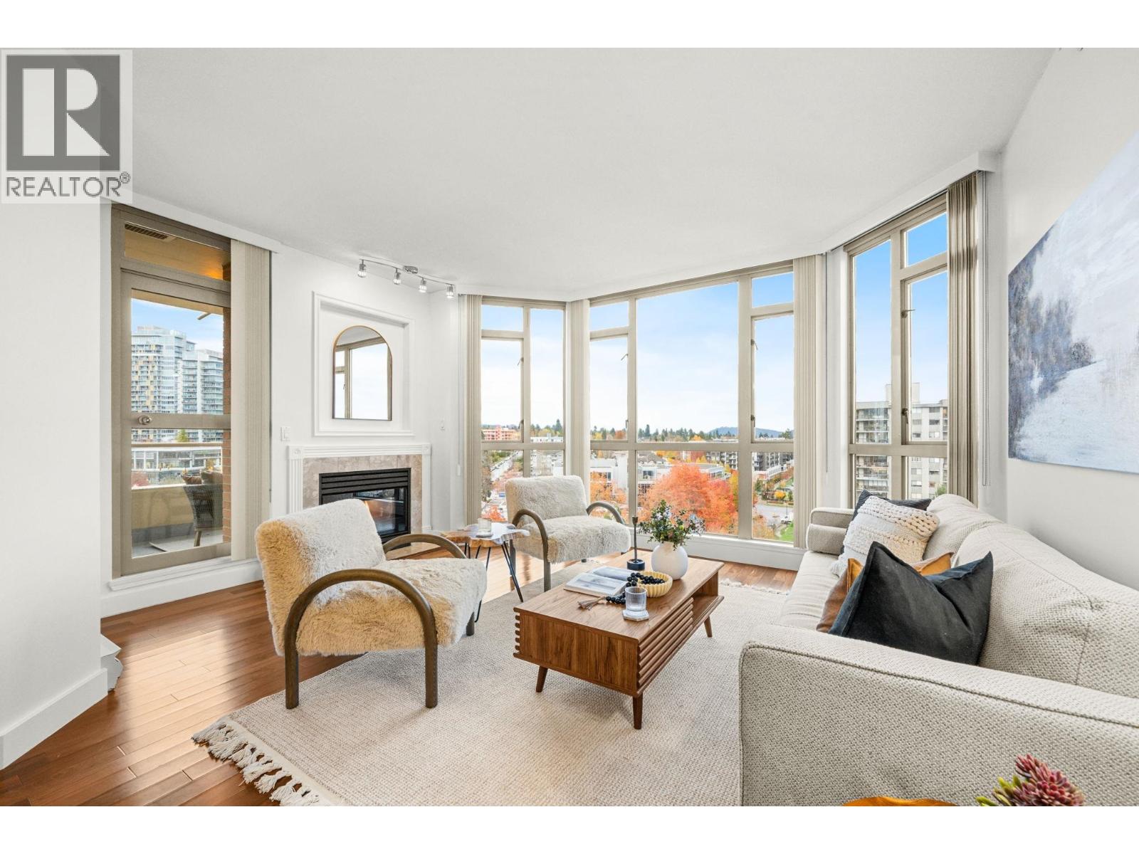 You´ll love this incredible corner suite at Victoria Park West with breathtaking 240° views from the North Shore Mountains to Burrard Inlet, Downtown Vancouver, and Mt Baker - a panorama that glows with sunrise light and sparkles at night. Set in a sought after concrete building beside beautiful Victoria Park, this bright and inviting 2 bedroom, 2 bathroom home features 9´ ceilings, floor to ceiling windows, and hardwood floors throughout the main living areas. The expansive layout easily accommodates full sized furniture, offering the perfect transition for those downsizing or seeking more space. The kitchen is soaked with natural light & features granite countertops and a cozy eat-in nook, while the spacious living and dining areas enjoy a gas fireplace and open to a covered balcony - perfect for morning coffee or sunset views. Freshly painted and move in ready, with access to a fitness centre, hot tub, sauna, guest suites, and lush gardens. Steps to shops, restaurants, the Shipyards, and the SeaBus. (32142976)