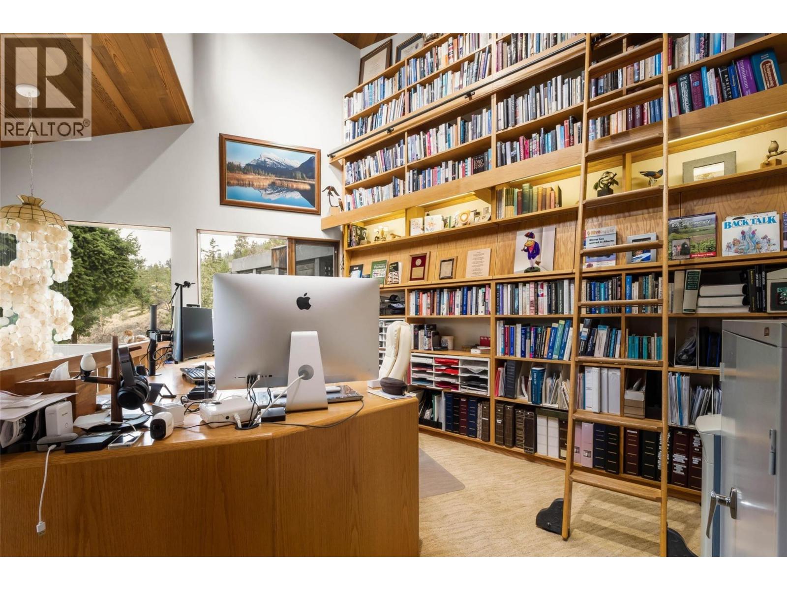 Discover your own private lakeside retreat, where timeless architecture meets the natural beauty of the Okanagan. Designed by Dan Pretty and meticulously maintained by its original owners, this 2,500+ square feet home showcases true craftsmanship and tranquility. Vaulted ceilings and rich natural wood create warmth throughout, while expansive windows frame ever-changing views of the surrounding trees, stream, and sparkling lake. The main living area centers around a striking stone fireplace- an inviting focal point for gatherings and relaxation. Downstairs, a charming family room with an antique brick fireplace adds cozy, rustic appeal. The well-designed kitchen opens to an upper deck, ideal for morning coffee or al fresco dining under the stars. The spacious primary suite features a private deck and hot tub, offering a serene retreat at day’s end. A loft-style study with a rolling ladder provides a peaceful nook for reading or work, and each bedroom enjoys its own unique connection to nature. The beautifully landscaped grounds feature mature trees, a meandering stream, and abundant wildlife, creating a true sense of seclusion. At the water’s edge, a private beachfront awaits, complete with a dock, an outdoor kitchen, and a sleeping area, perfect for unforgettable Okanagan summers. With a heated workshop, ample storage, and five pristine acres to call your own, this rare property offers endless possibilities- whether you move in and enjoy as-is or create your dream lakeside estate. (39445567)