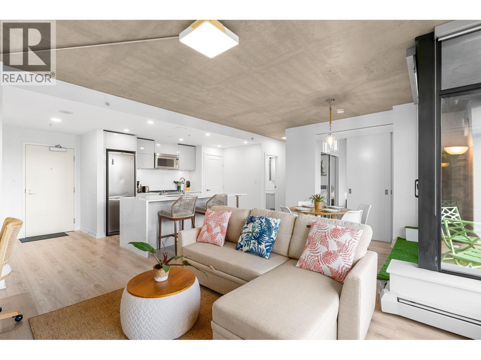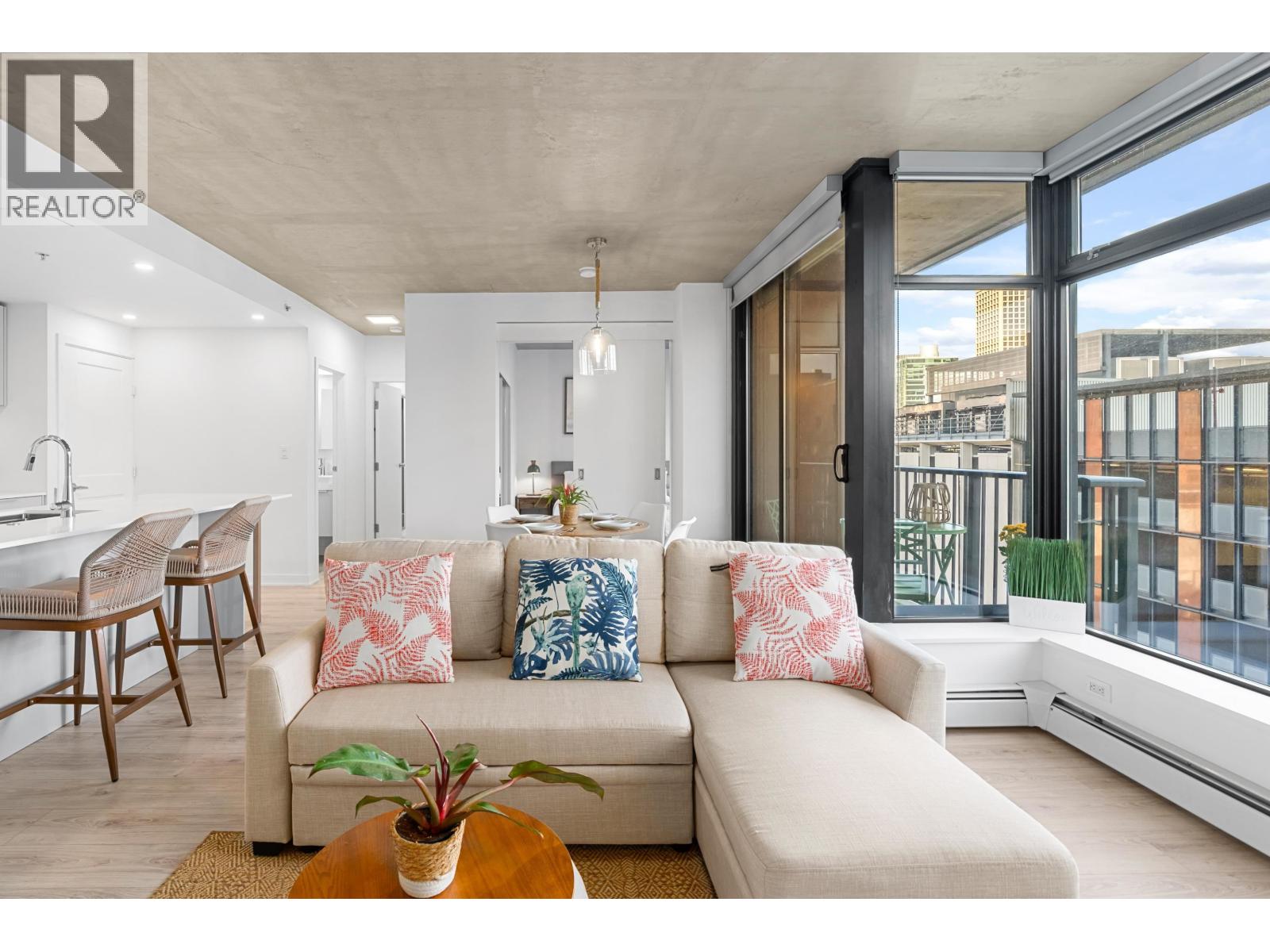 INVESTOR ALERT - AIRBNB FRIENDLY! Live or invest in the iconic Woodward´s Building in historic Gastown. This renovated 2 bed, 2 bath North-facing home features new grey laminate floors, custom closets, glass shower doors, stone countertops, pantry, gas stove, and S/S appliances. Smart square layout with spacious bedrooms - the primary includes a soaker tub and separate glass shower. Enjoy polished concrete ceilings, balcony, and top-tier amenities: full gym, rooftop hot tub, and deck with city & mountain views. Heat & internet included in strata fees. Price includes all furniture if desired and 1 secured parking. Pets & rentals allowed. Steps to shops, dining & transit - perfect for investment, to host guests for World Cup, or to enjoy yourself, the possibilities are endless. (32144345)