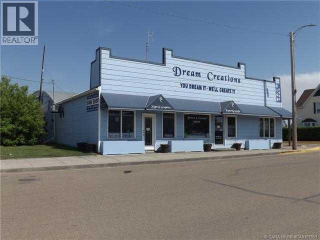 Looking for a building with an ideal location? Located on a corner lot on 881 and 51 ave. in Hardisty. This building has 4838 sq ft of space for your business. With a location like this and space there is a multitude of business that would be we suited for this space. Also ample space for even a couple businesses. The store font area is a beautiful area with large windows. There is a large walk in cooler with glass sliding doors which was part of the pre existing flower shop. Two bathrooms and a large over head door at grade level which is perfect for large freight orders. The business was previously operated as sign/promotional item shop and previous to that it was an oilfield supply store. There is also a vacant lot that can be purchased separately . Should you wish to open a sign/ promotional business the seller would consider selling equipment. (31349544)