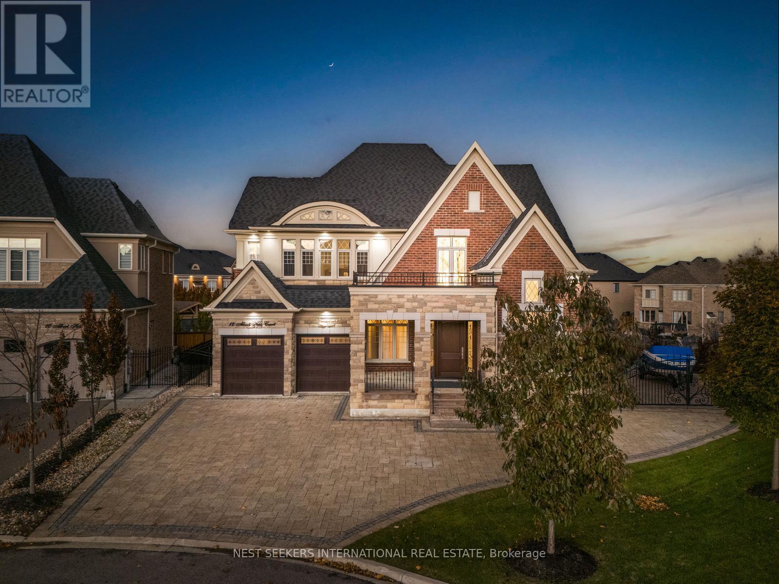12 Albert Hill Crt - The Gates of Nobleton Rarely offered cul-de-sac on a premium pie-shaped lot (62ft x 138ft, widening to 161ft) backing onto protected greenbelt. Approx. 4200 sq.ft. + 2000 sq.ft. finished lower level. Features 10ft ceilings, 8ft doors, custom millwork, formal living & dining rooms, separate office & study, and a custom kitchen with Miele gas appliances & heated floors. Upstairs offers 4 bedrooms, each with ensuite & walk-in closet. The primary suite features a double-sided fireplace, spa ensuite. Finished lower level includes a home gym area, sauna, games room, built-in sound system, and walk-up access to backyard. Extras: 3-car garage, EV charger, towel warmers (3 ensuites), custom wrought iron gates/railings, whole-home water filtration & softener, Reverse Osmosis drinking water, extended interlock driveway, plus a rare extended patio/drive area ideal for boat parking or future sports court. Luxury, privacy & location in one of Nobleton's most exclusive enclaves. (41604304)