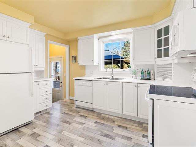 Incredibly well-located and lovingly maintained bungalow on a very private 10,000+ sq. ft. lot, just steps from the lake and shops. This home is ideal for intergenerational living or adults wanting to downsize. It features a separate rear entrance leading to the basement which could be converted into its own suite. Upstairs has beautiful oak floors, a bright south-facing living area, and a traditional layout. The practical carport could be enclosed to make garage. The wide driveway allows for side-by-side parking. Major updates include furnace, central air, roof, and windows. Never flooded, with an updated sump pump. (39600925)