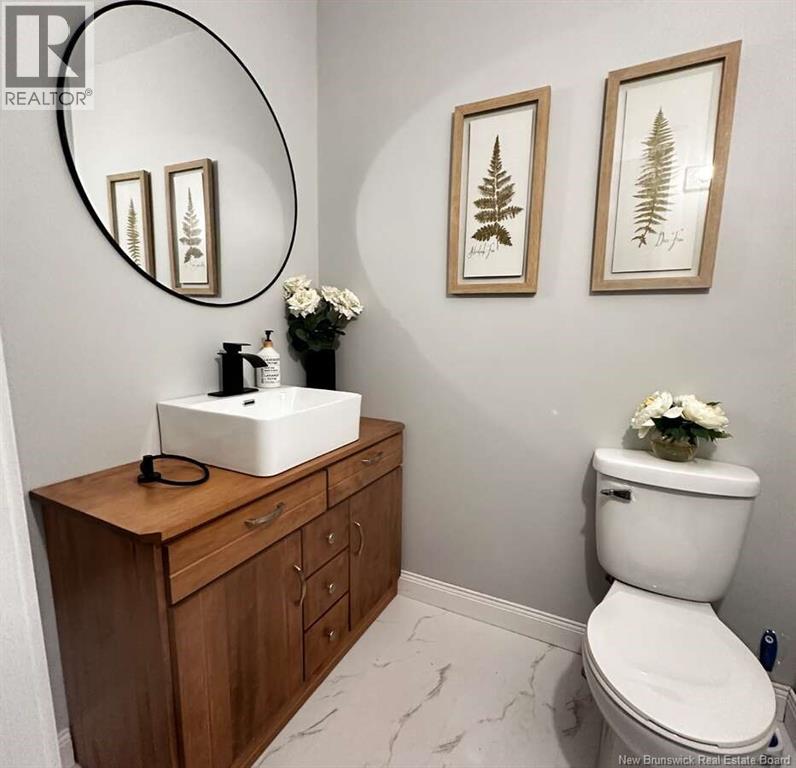For more information, please click Multimedia button. This spacious three-bedroom plus office (or optional fourth bedroom) bungalow sits on a beautiful 0.416-acre lot, offering a perfect balance of comfort, flexibility, and country charm. Inside, you'll find a bright kitchen and living room with a wood-burning fireplace, creating a warm, welcoming space for family and friends. The primary bedroom includes a walk-in closet and updated two-piece ensuite, while the second main-floor bedroom sits next to a refreshed three-piece bath and convenient main-floor laundry. The lower level is fully finished with a large open area ideal for a family room, games space, or gym, plus a bonus room that can serve as an office or fourth bedroom (non-egress). Step outside to enjoy your brand-new back deck, perfect for morning coffee or evening barbecues, and a charming enclosed front porch where you can relax and take in the peaceful nature views. The show-stopping feature is the oversized three-car garage with a massive loft, ready for your workshop, studio, or storage needs. Located just minutes from Oromocto and Fredericton, you'll love the nearby walking trails, lakes, and parks that make French Lake living so special. Recent updates: new deck, modernized kitchen with new hardware, fresh paint throughout, new flooring, and minor electrical upgrades. Move-in ready - your next chapter starts here. (29212900)