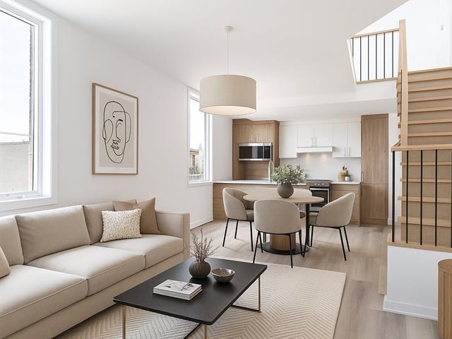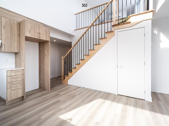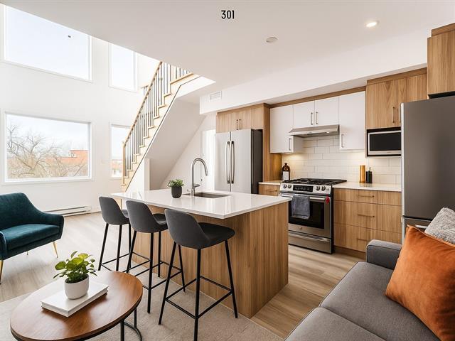 Location, location, location! Discover this stunning brand-new rental building ideally located at the corner of the iconic Jean-Talon Market. Nestled in the heart of Little Italy, this top-floor, two-storey unit boasts cathedral ceilings, a spacious mezzanine, and a private terrace with breathtaking city and mountain views. Designed for comfort and style, the unit features a closed bedroom, an open-concept kitchen and living area with quartz countertops, recessed lighting, and a washer/dryer installation in the bathroom. Large windows flood the space with natural light, while a wall-mounted air conditioner ensures year-round comfort. (46645676)
