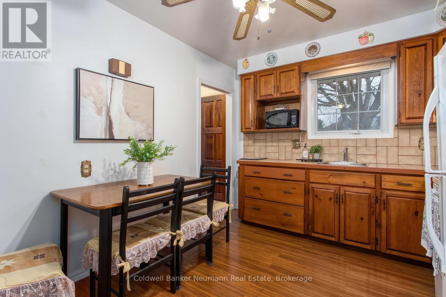 Welcome Home to This Charming 3-Bedroom Bungalow on a Quiet, Family-Friendly Street! Step into comfort and character with this delightful bungalow, perfectly nestled on a peaceful, tree-lined street ideal for families or anyone seeking tranquility and convenience. The main floor boasts three generously sized bedrooms, each filled with natural light streaming through newer windows installed throughout the home. Enjoy low-maintenance living with attractive laminate flooring (installed just five years ago) and durable vinyl, creating a bright and welcoming atmosphere from the moment you enter. Downstairs, the fully finished basement offers incredible additional living space. A fourth bedroom, a spacious family room, and a built-in bar provide the perfect setup for entertaining friends or hosting cozy movie nights. The large laundry/furnace room offers both functionality and extra storage, something this home has in abundance on every level. Recently updated in June 2025, the main 4-piece bathroom features new tile flooring, a modern vanity, and a brand-new toilet, adding fresh style and comfort to your daily routine. This home has been meticulously maintained, with numerous big-ticket updates for peace of mind, including: New roof shingles (2018) Brand-new furnace and central air conditioning (2025) New tankless water heater (2025) Culligan water softener system (2023).Step outside into your private, deep backyard oasis. Lush and green with mature trees, including your very own pear tree that promises delicious seasonal fruit.This space is perfect for relaxation or weekend BBQs with friends and family. Whether you're a first-time homebuyer, downsizer, or investor, this property offers unbeatable value, comfort, and location. Conveniently located near parks, public transit, Guelph Lake and beach, and just a short drive to a shopping plaza featuring Walmart, Home Depot, banks, and more. (41609113)