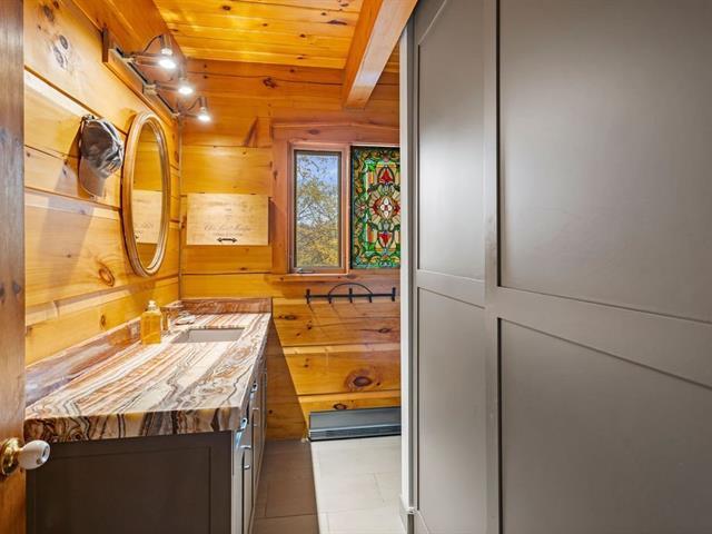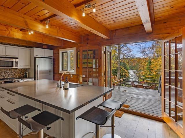 Rental from Dec. 1, 2025 to March 31, 2026 - Morgan Reserve Val de Loire sector Lac Sainte-Marie in Saint-Adolphe d'Howard. Super equipped for entertaining - 4 bedrooms, fireplace, kitchen for entertaining, a family room with cathedral ceiling and stained glass windows. Very large flat lot, terrace overlooking the water. Private entrance on large 50,000 sq. ft. lot in full sun. Direct access to km of hiking, cross-country skiing, snowshoeing, biking and snowmobiling trails DIRECTLY from your lot. A few steps from Mont Avalanche and the picturesque village of Saint-Adolphe. Set up your own skating rink in front of your house, land for fun an (50996312)
