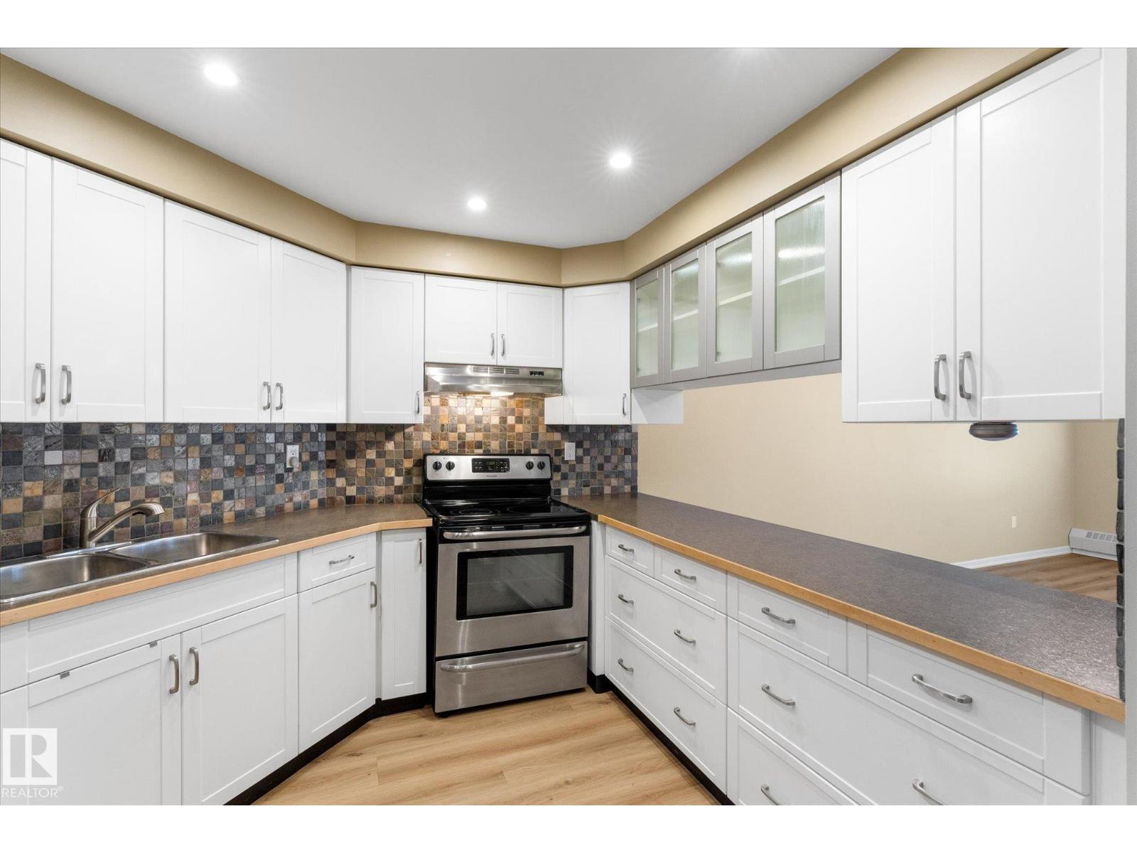 Immaculate and move-in ready! This stunning condo feels like a show suite and is located in a highly sought-after concrete and steel building overlooking Edmonton’s beautiful river valley. The updated kitchen features stylish cabinetry, stainless steel appliances, a designer hood fan, and endless counter space that opens to a spacious dining area and bright living room. Large windows flood the space with natural light, and a garden door leads to your patio. Recent upgrades include brand-new vinyl plank flooring throughout. The primary bedroom offers a large walk-in closet with convenient in-suite laundry, plus there is a 2nd bedroom down the hall, additional storage room, and a separate storage cage on the basement level. Heated underground parking includes a car wash bay, and owners enjoy top-tier amenities: library, social lounge, billiards room, craft space, and workshop. Steps from river valley trails, shopping, and transit, this one truly checks all the boxes! (33549507)