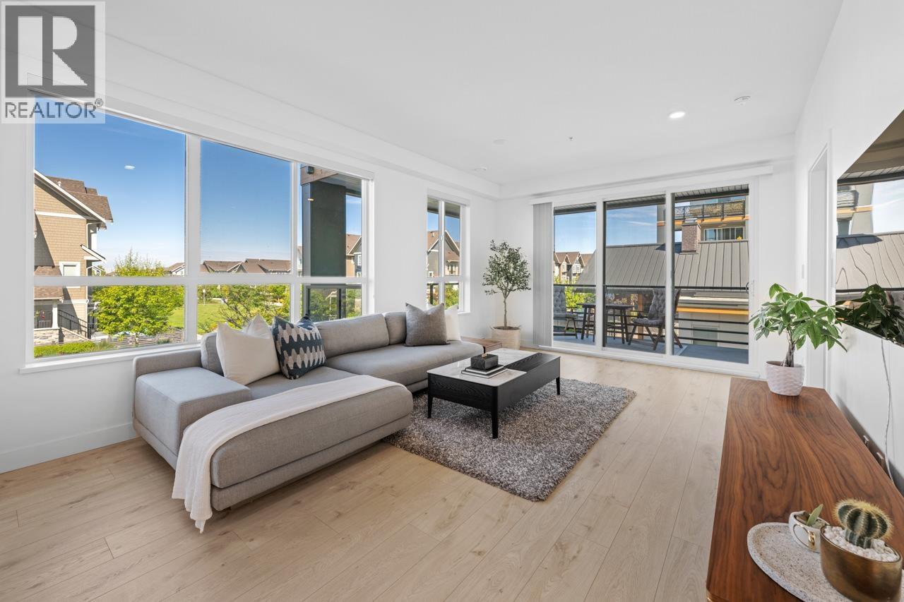 Welcome to Peregrine South! This 2 bedrooms + den CORNER UNIT is stunning. The extra-high ceilings and oversized windows fill every room with natural light. The generous central island kitchen is every foodies dream. The bedrooms are placed at opposite sides of the suite for privacy. The light neutral colour palette is modern and warm, perfect for any decor style. Step outside to the spacious covered wrap-around balcony, relax and enjoy views of the greenspace and dog park. Just minuets to shops, restaurants,Tsawwassen Mills mall, golf course, parks, beaches, walking trails and Ferry Terminal. 2 side-by-side parking & storage locker included. Amenities include event room with billiards & BBQ area, workout room and EV chargers. 2 pets welcome. non-smoking building. (32150614)